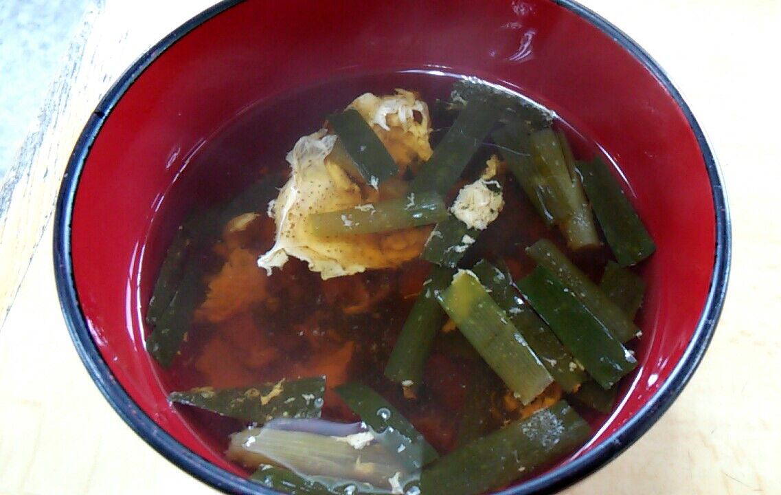 味噌汁が美味しいとの情報がありましたが、この日はニラ玉醬油汁でしたにゃ🌸