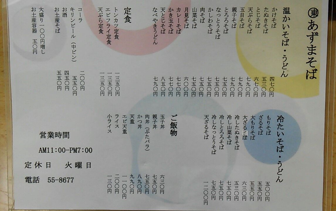 函館市鍛治2-9-25にあります蕎麦屋「あずま」