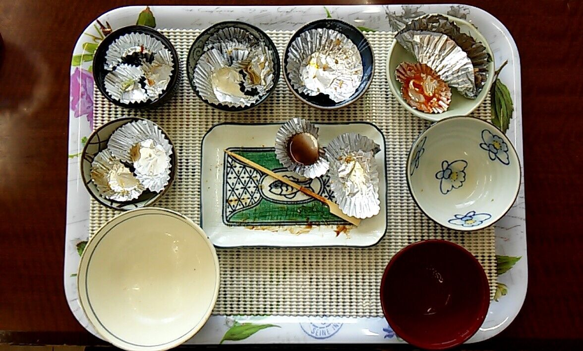ご飯は少し柔らか目、味噌汁は具沢山で結構濃い味だったぬん。