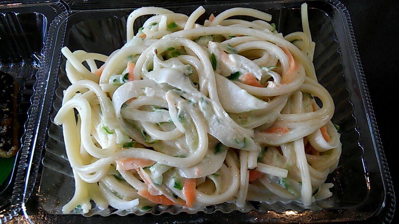 野菜たっぷりのスパサラ、マヨ控えめで好みの味だったにゃ☆彡