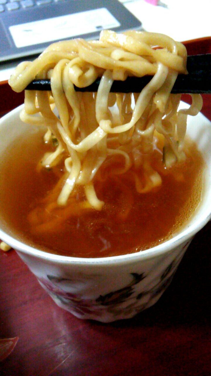 袋やカップのチキンラーメンとほぼ同じ味のスープでしたにゃよ(=^・^=)