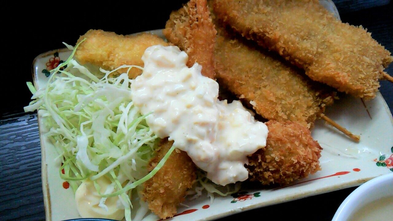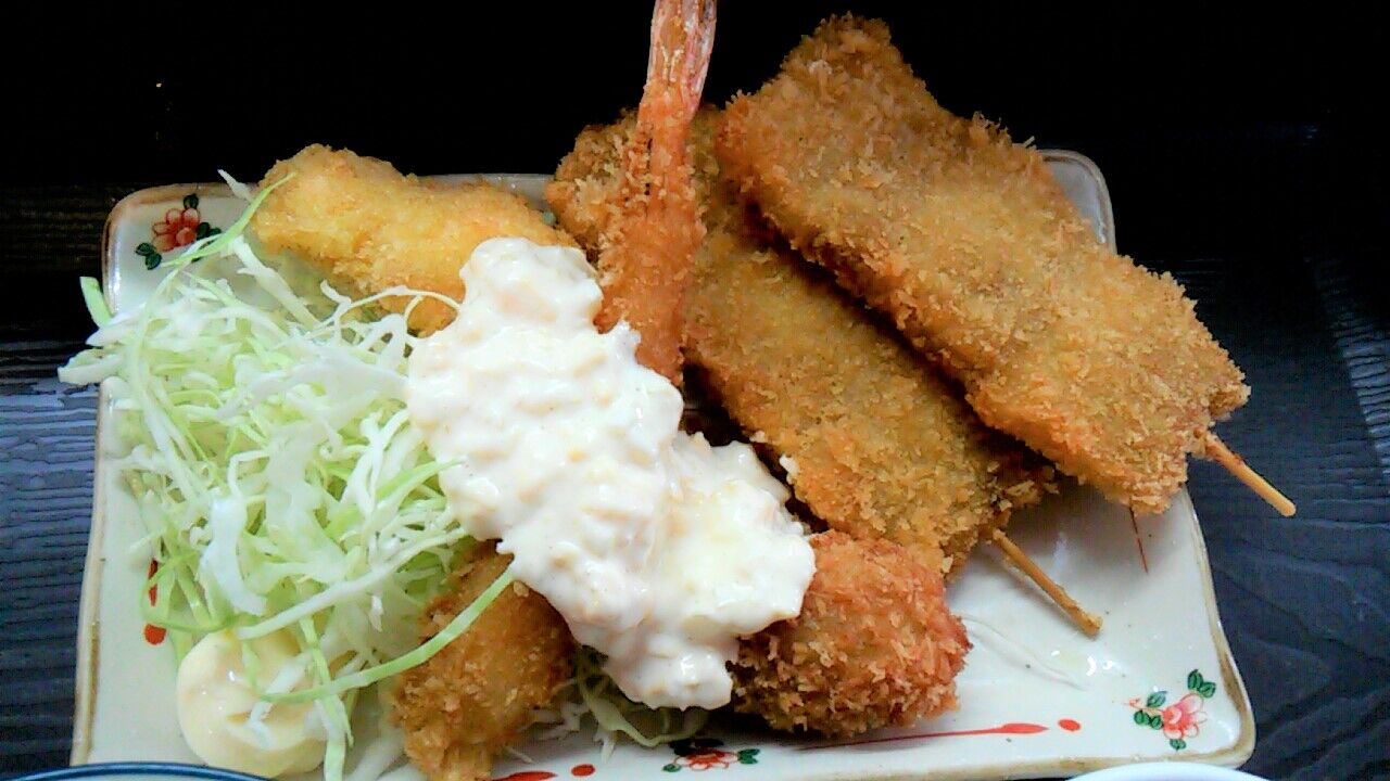 メインの串カツ&海フライ(=^・^=)