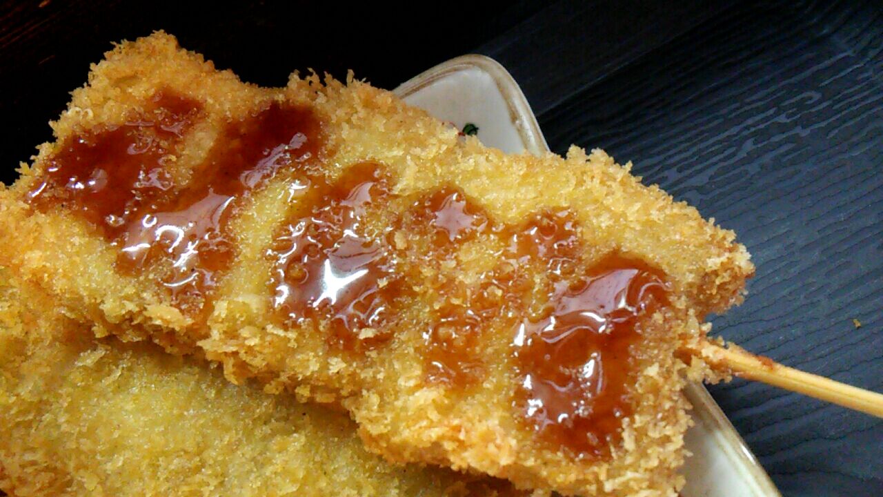 肉オンリーの串カツ、美味しいにゃあ~~~(=^・^=)