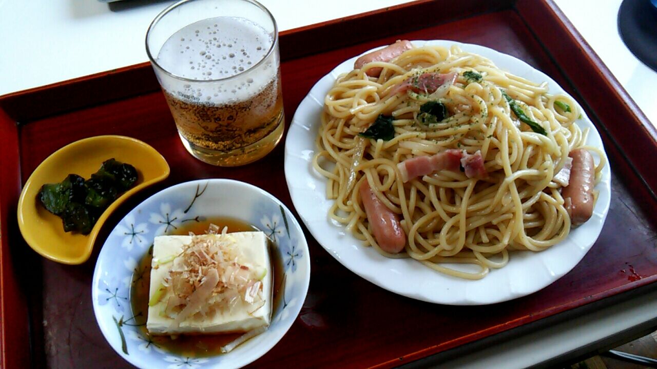 ・ベーコンウインナー&ほうれん草のバター醬油スパゲッティ