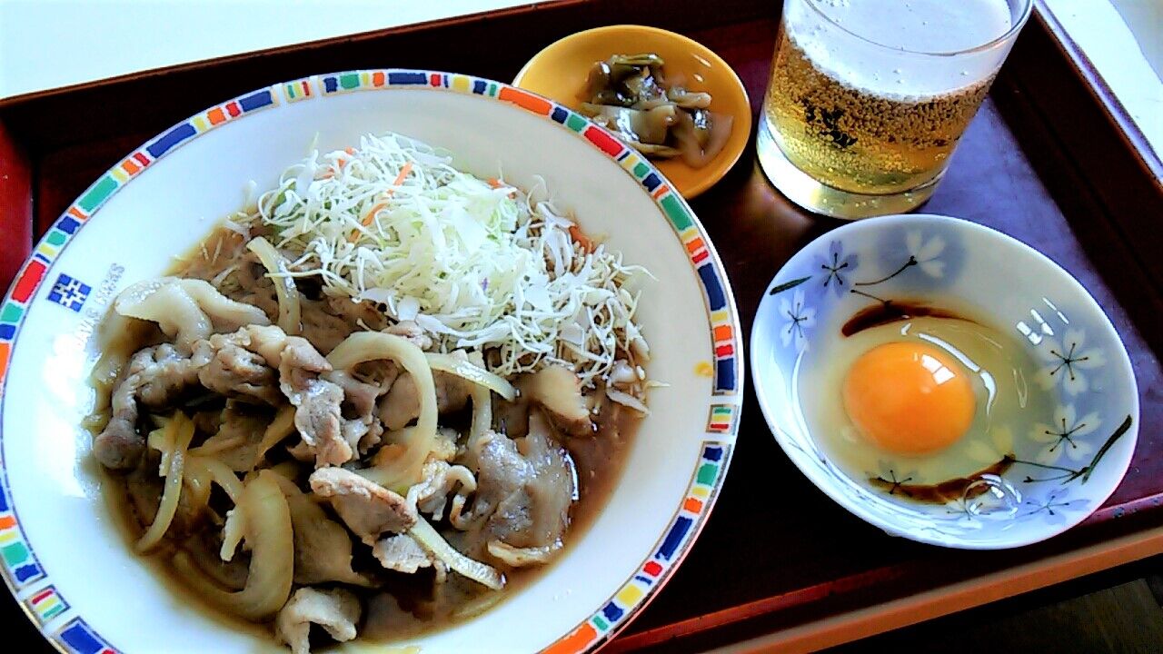 ・つゆだく豚生姜焼き&生卵