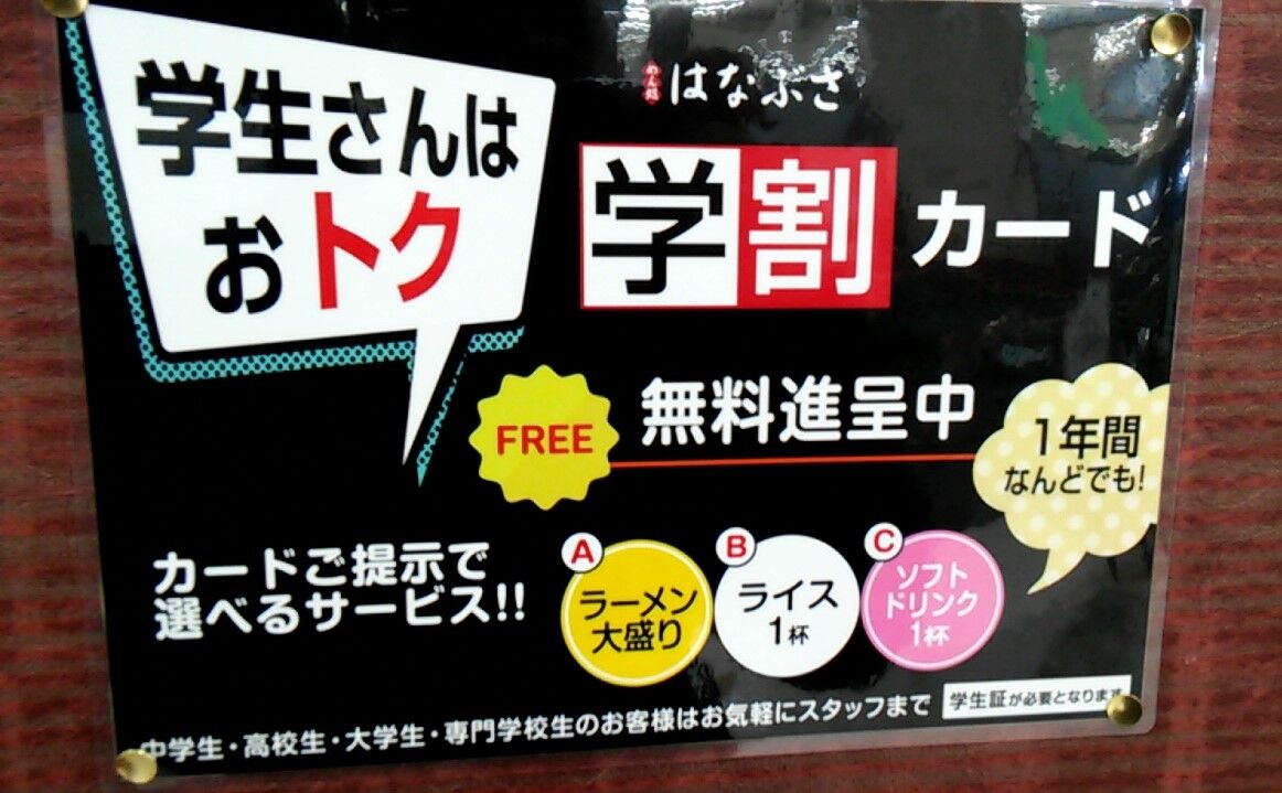 お得な学割カード、無料進呈中~~~!!!