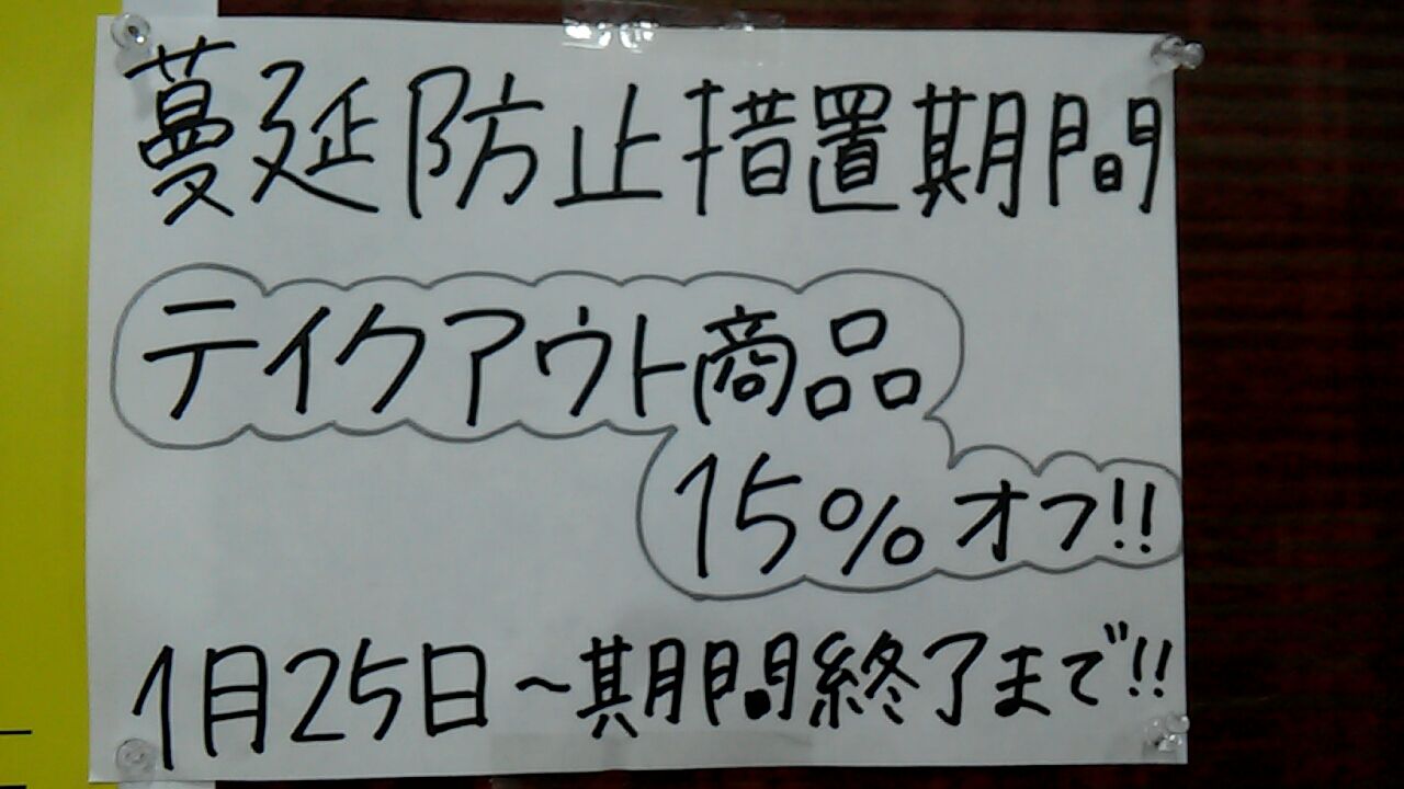 因みにまん延防止措置期間中はテイクアウトメニューが15%オフ!!!