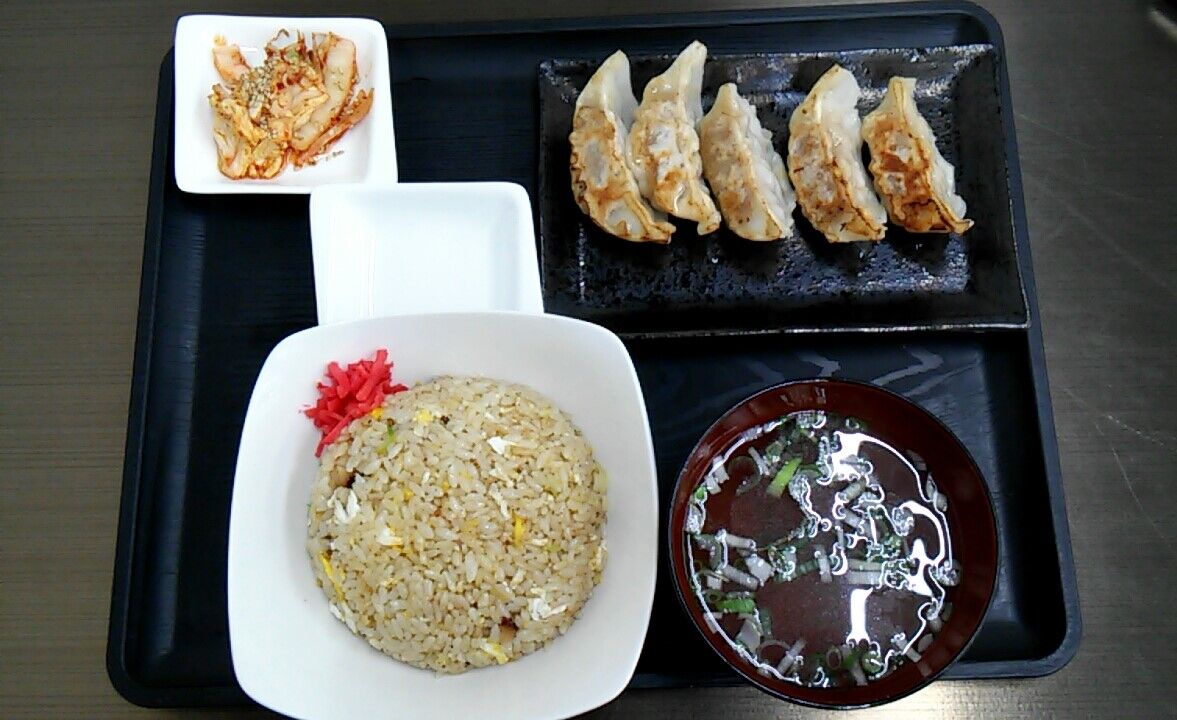 チャーハン・餃子5個・スープ・キムチのセットでしたにゃよ( ̄◇ ̄)