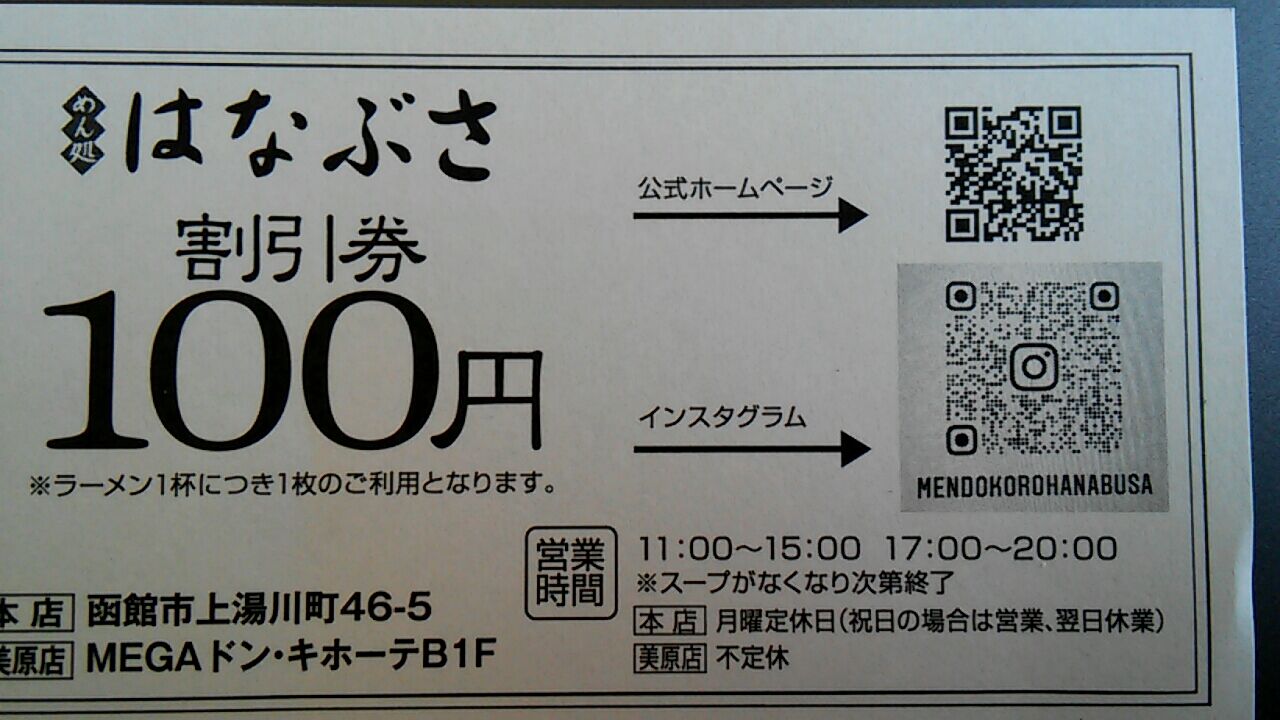 まな様的函館ラーメン屋「めん処はなぶさ MEGAドン・キホーテ函館店」