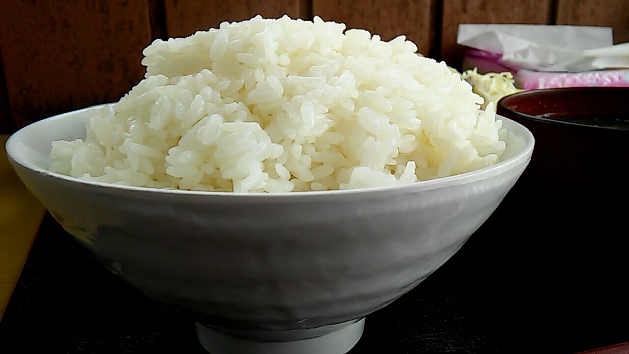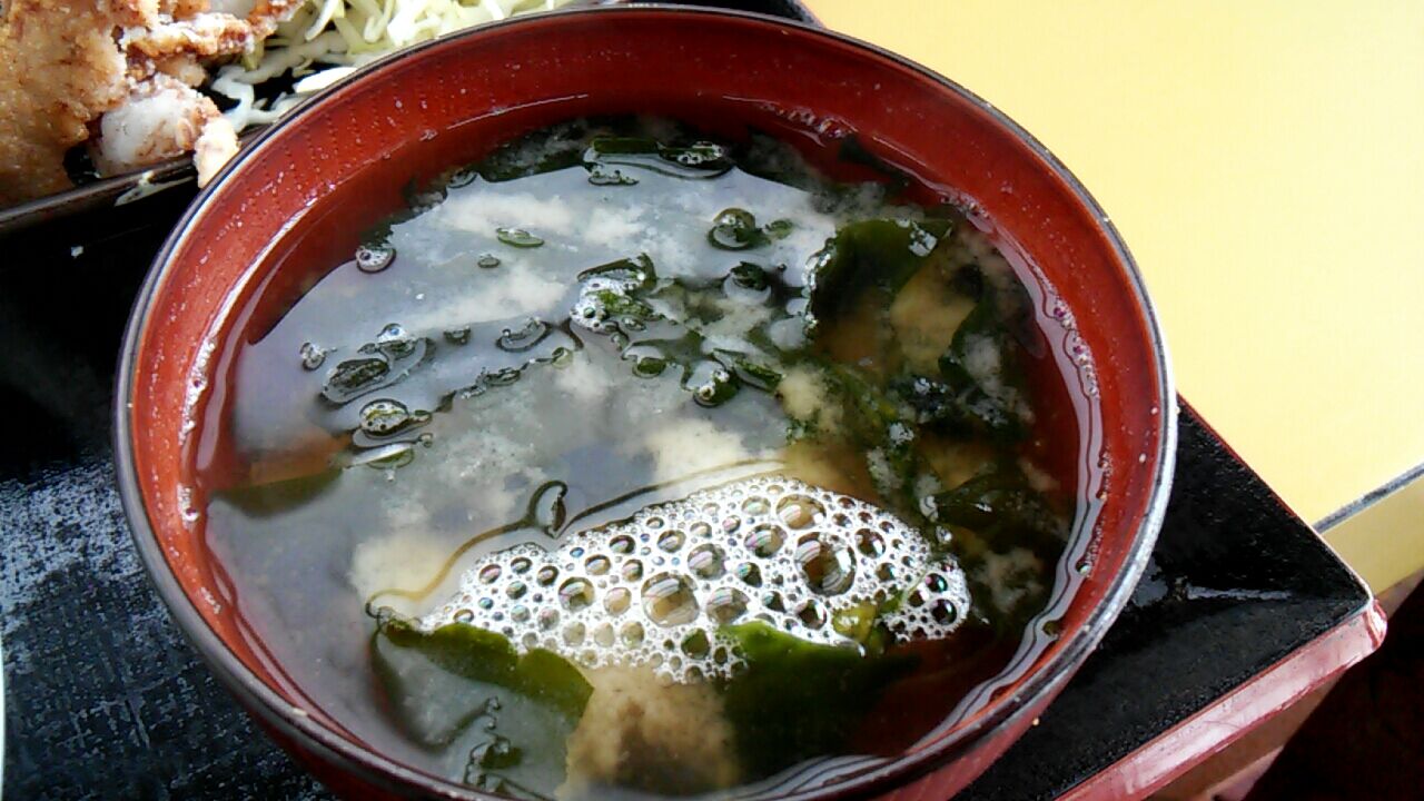 大盛り丼飯としっかり味のワカメ味噌汁。