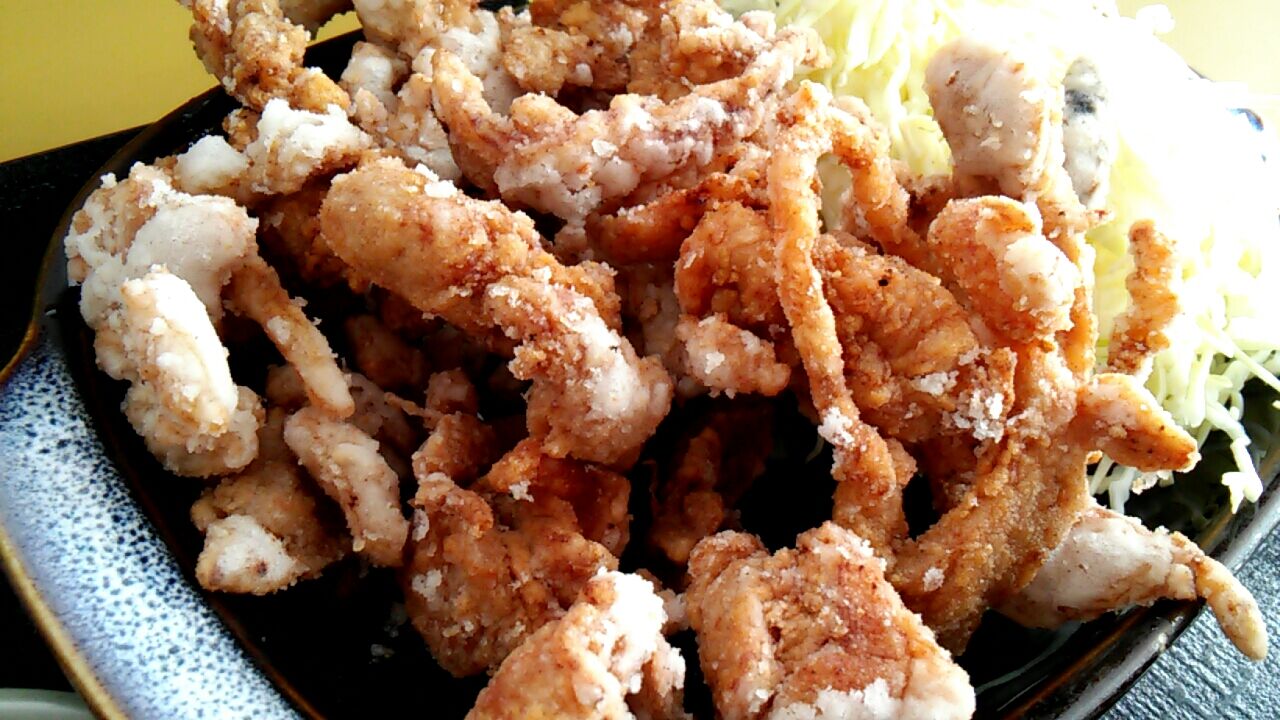 細切りの鶏肉なので揚げ時間が短い、だから3分チョッとでの配膳ですにゃ(=^・^=)