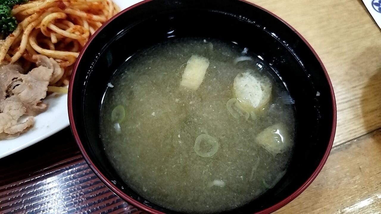 ジャガイモ・油揚げ・ワカメ・長葱の味噌汁、しっかり味で好みでした🌸