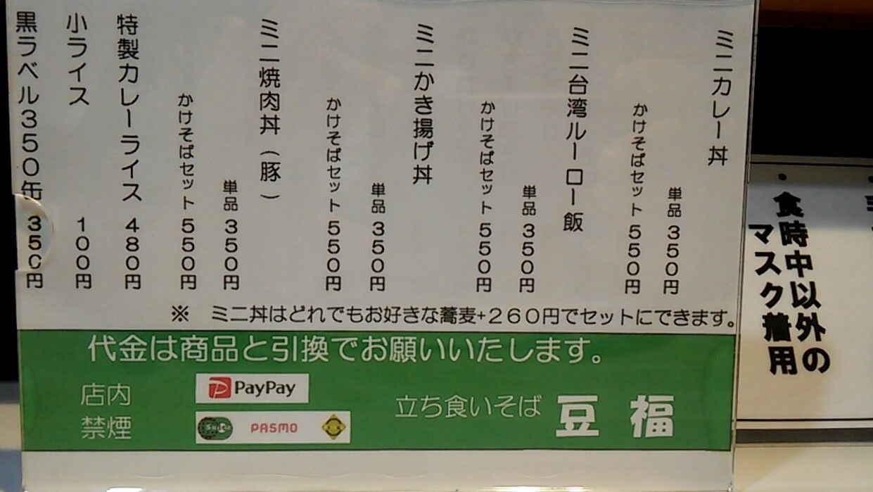 まな様的札幌立ち食いそば店「豆福」で食べたかけそば・春菊天・ミニカレーの評価は・・・