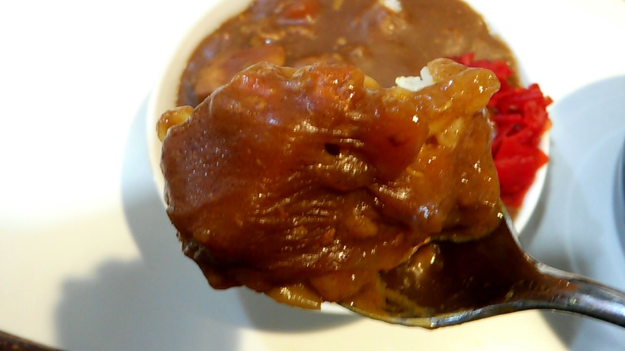 ご飯がぎっちりと詰められていた、全然ミニでは無いカレー丼( ̄◇ ̄)