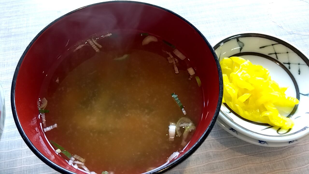 美味しかった濃いめの味噌汁と細切りたくあん嬢☆彡