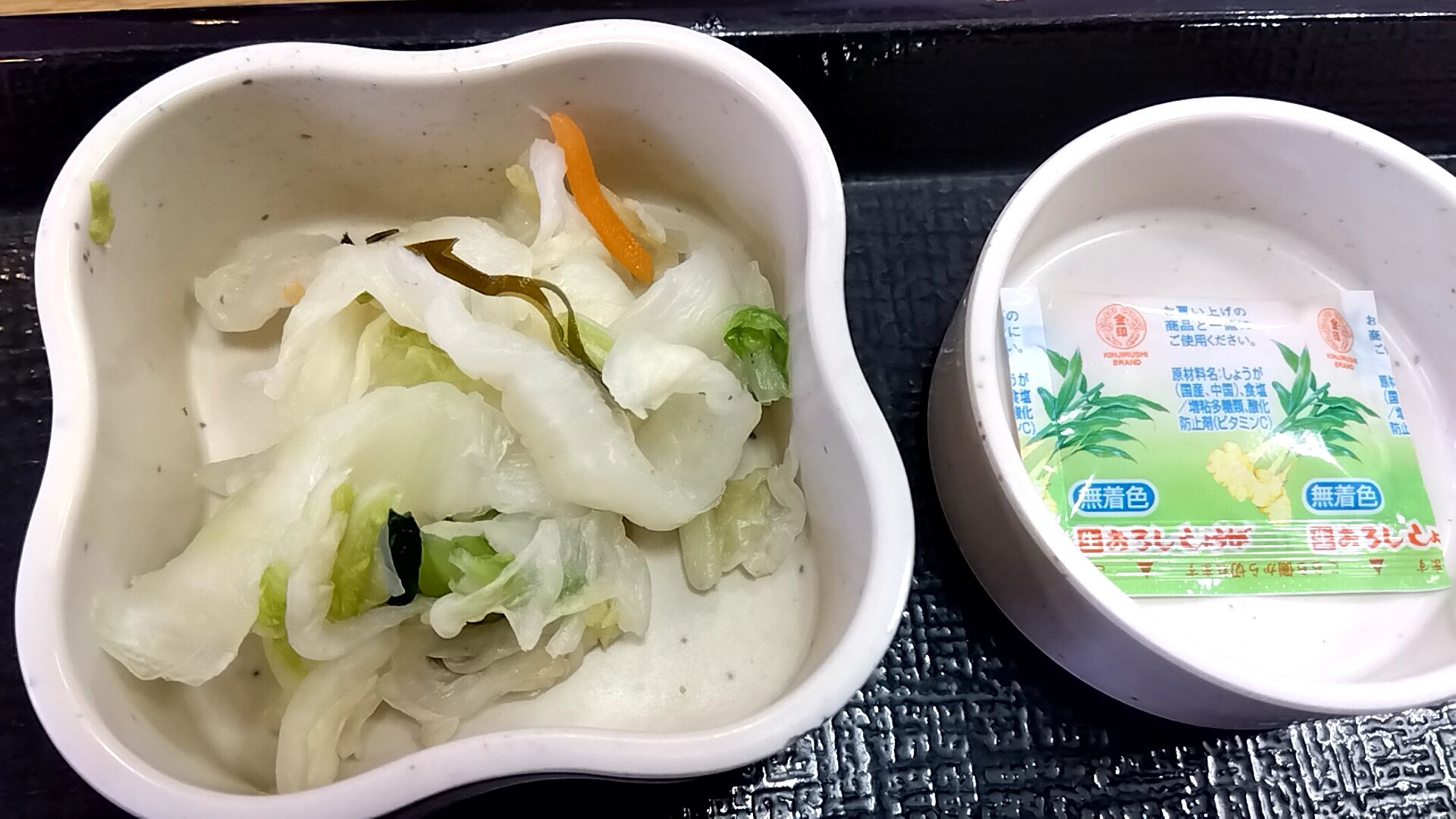 京風つけものとおろし生姜、生姜はお好みでうどんに投入。