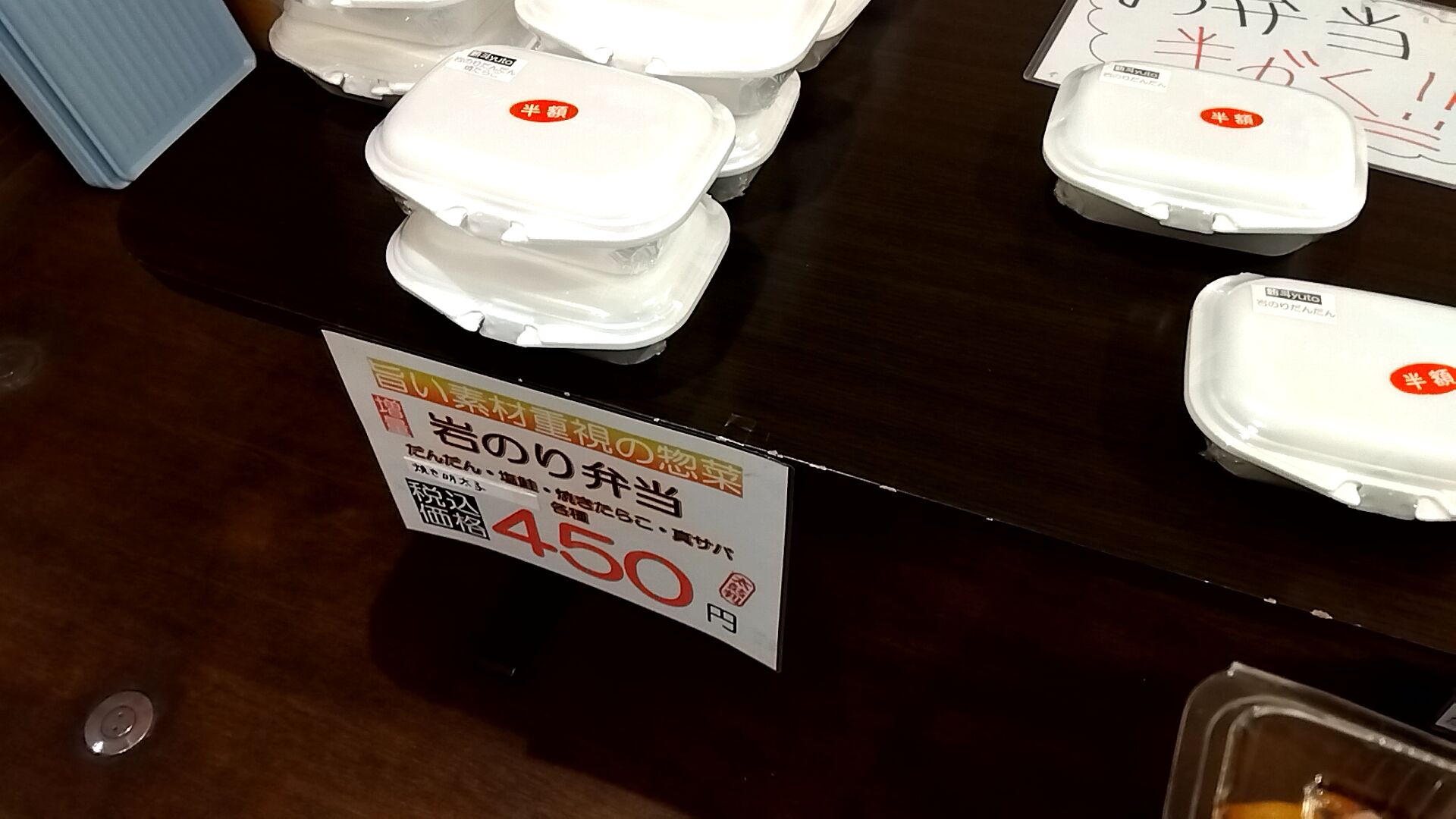 まだまだ半額、岩のり弁当は確か4種類だったかと思います(だんだん・焼たらこ・鮭・鯖)