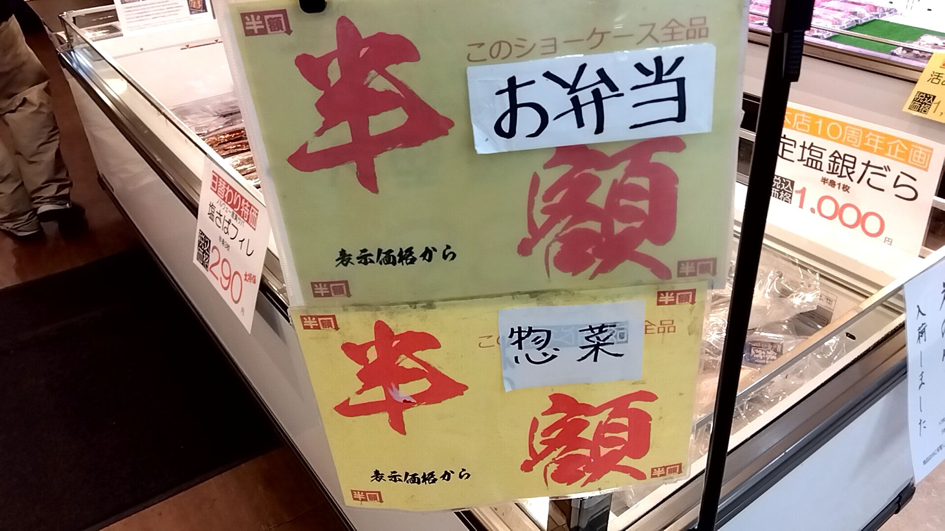 15時頃に行ってみたら、丁度お弁当とお惣菜の半額タイムのゴングが鳴りました〜〜〜🎵