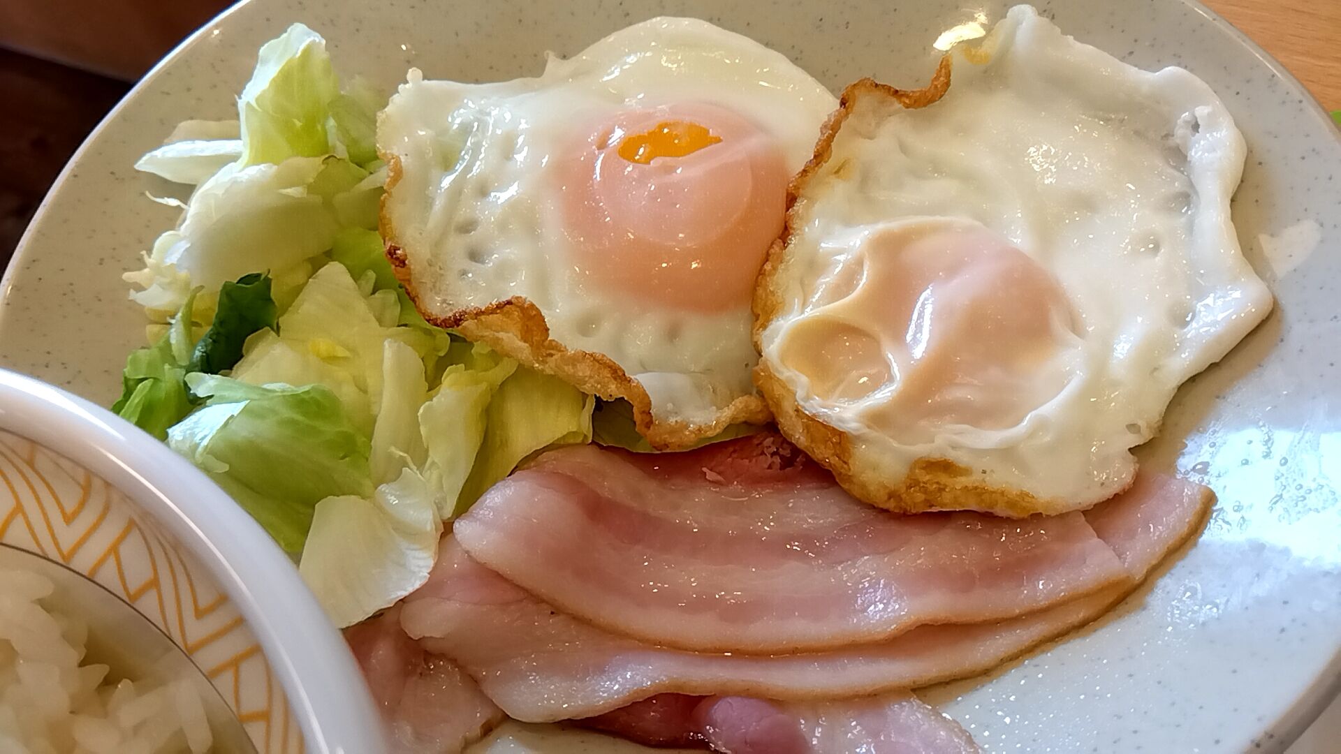 目玉焼きでは無く片目焼きが2個、その理由は・・・知りませぬ。
