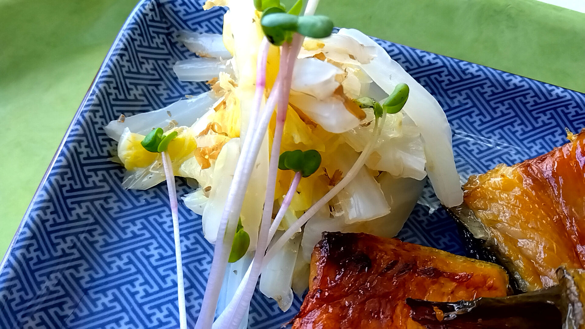 目も頭も悪いまな様、白菜のお浸しを最初イカ刺しだと思ってビックリした!!!