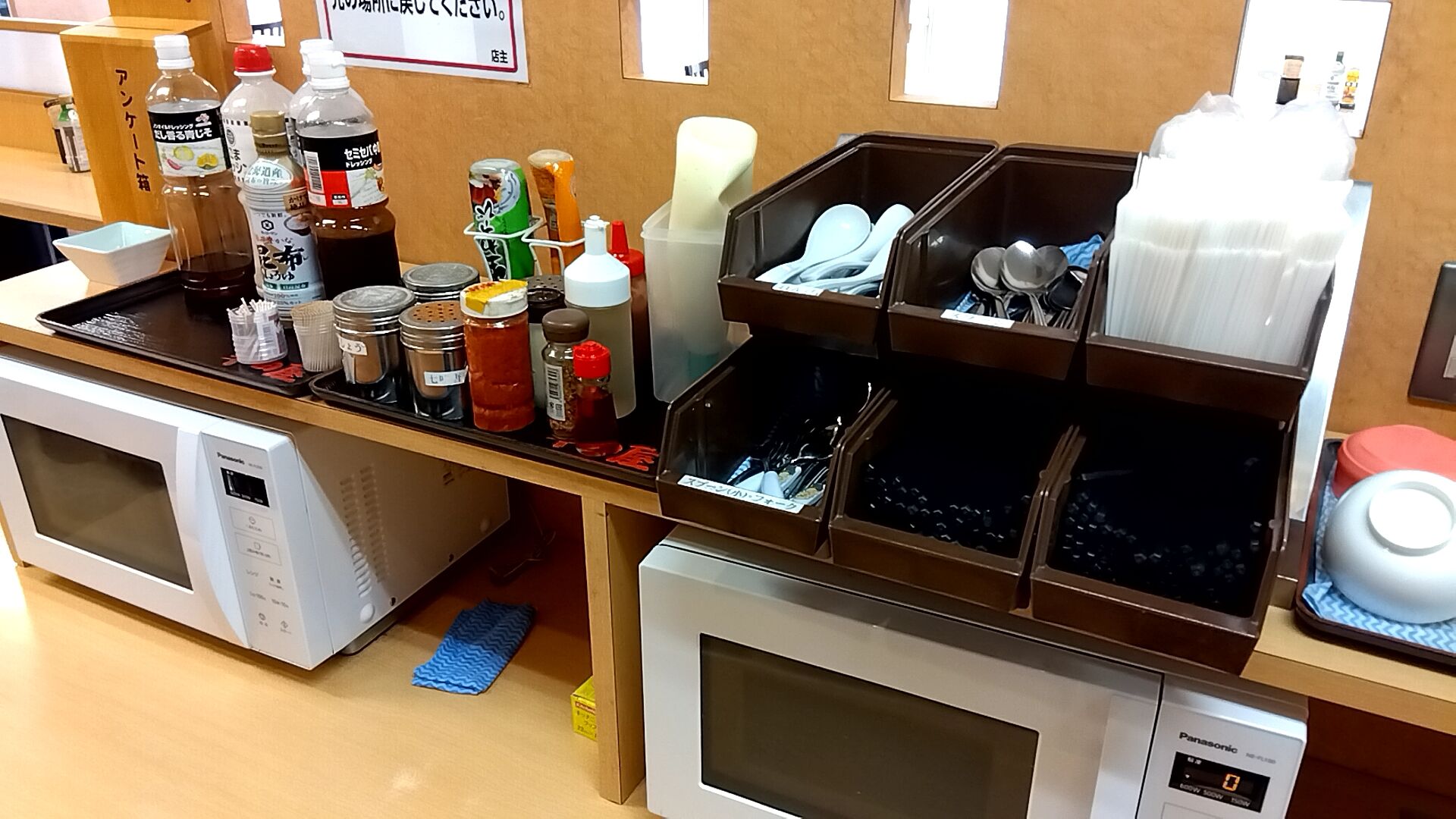 冷めている物はセルフレンチン、調味料も色々完備🌸