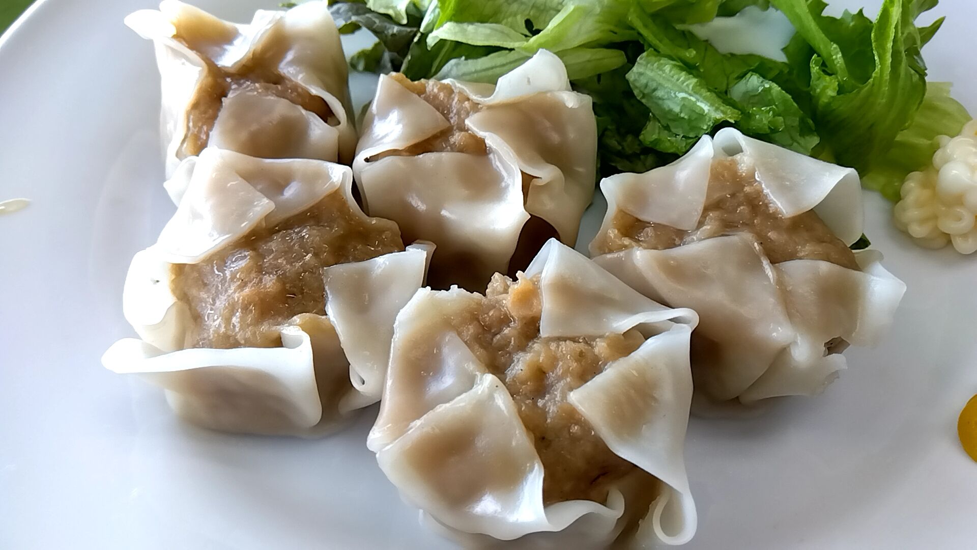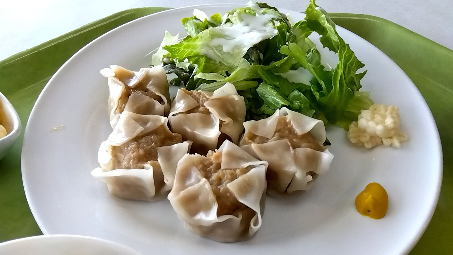 メインの焼売5個とレタスサラダ。
