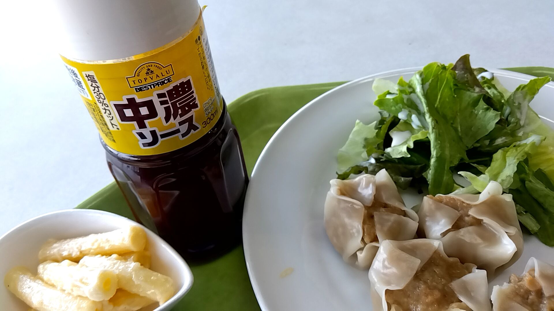 置いてあった調味料にウスターソースは無かったので中濃ソースで代用、マヨ嬢も本指名🌸