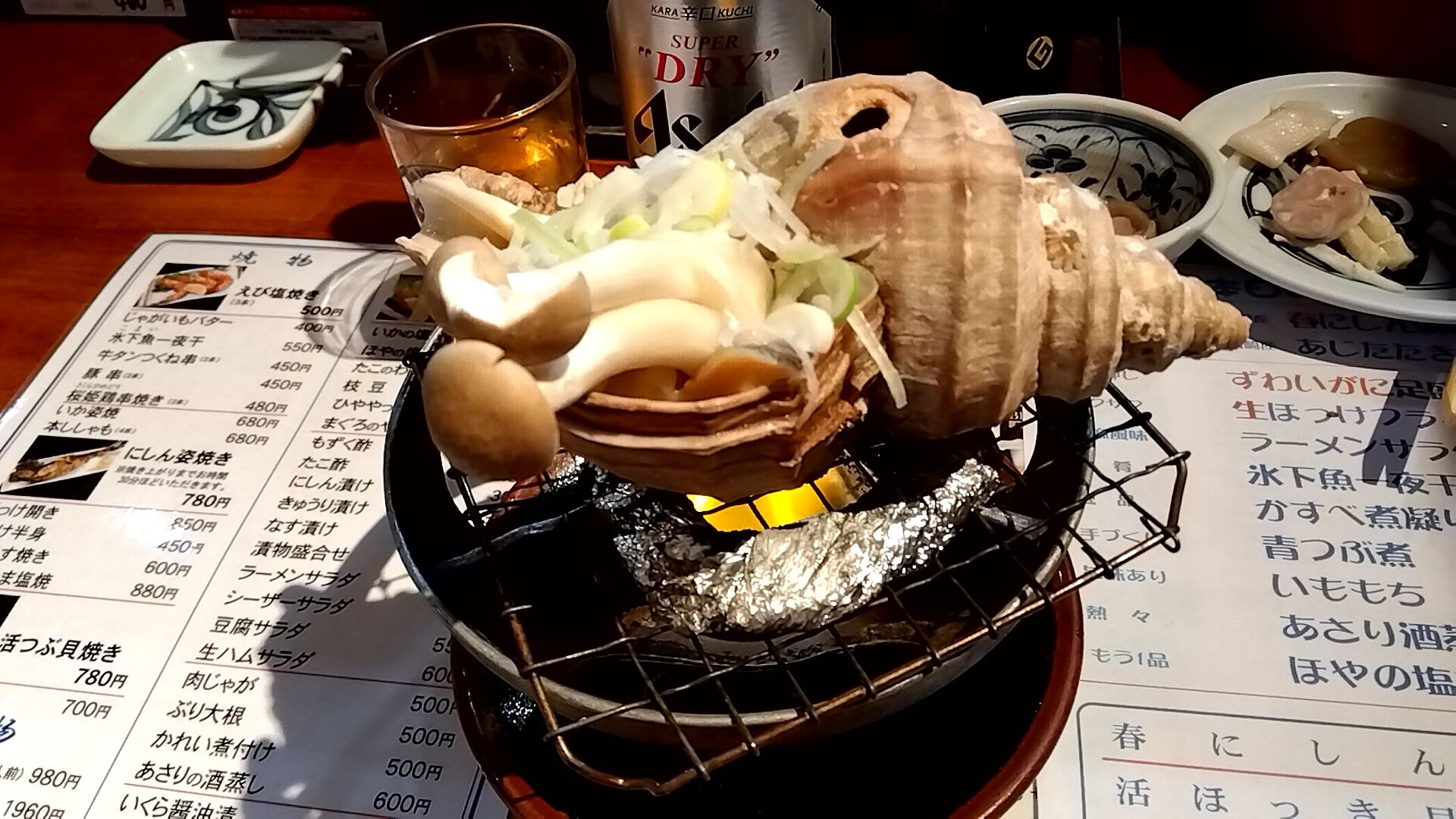 食べてみたかった活つぶ貝焼き780円。