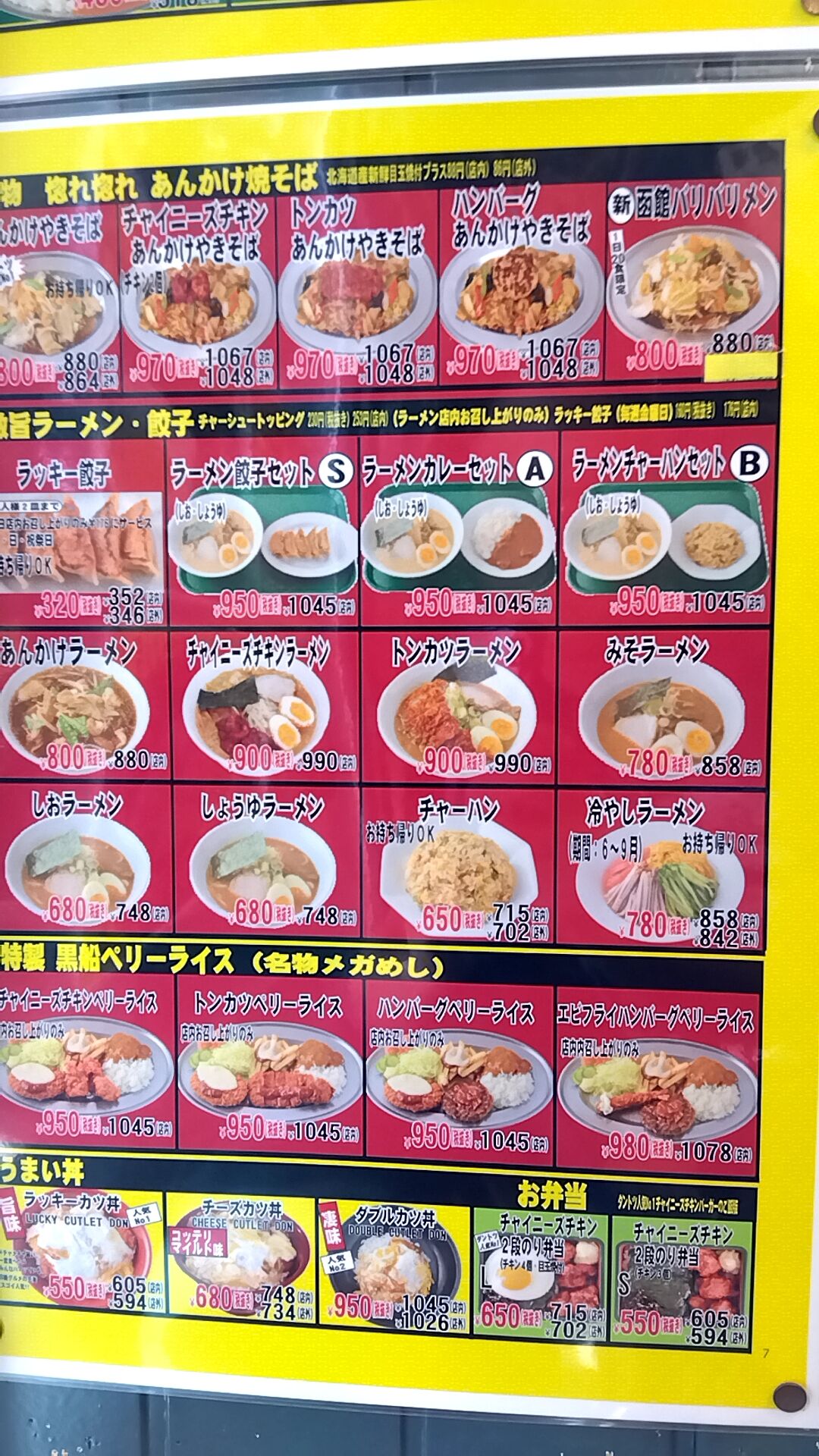 函館パリパリメン・各種ラーメン・餃子・チャーハン・各種特製黒船ペリーライス。