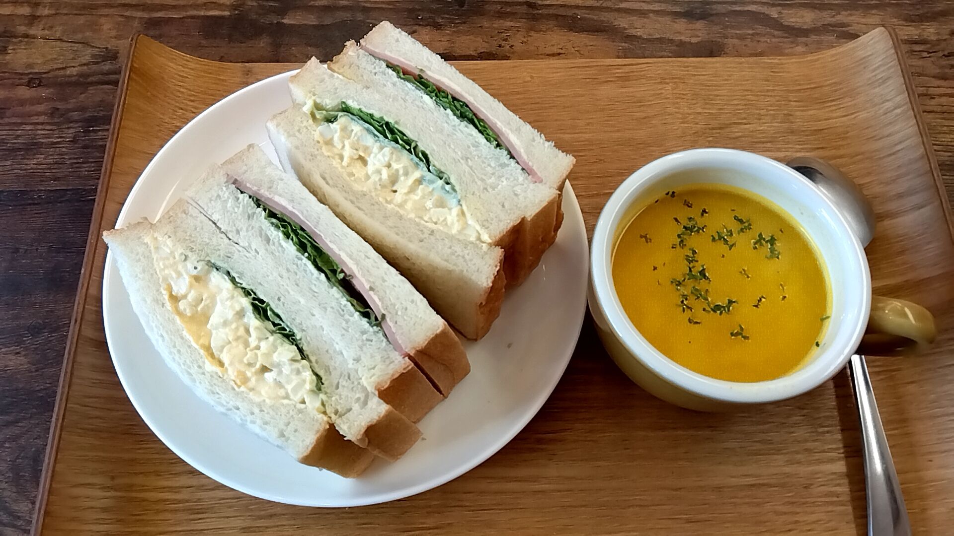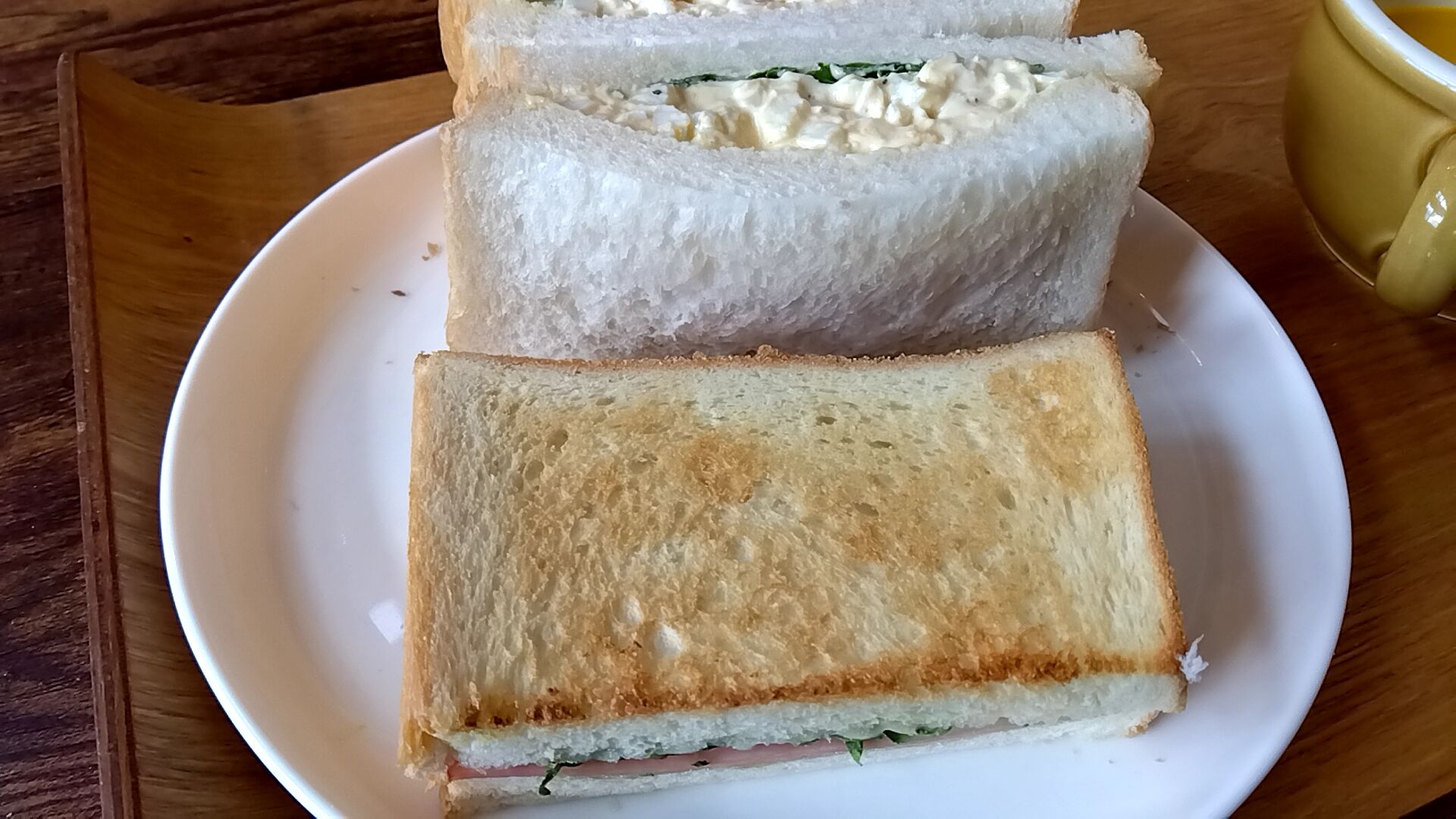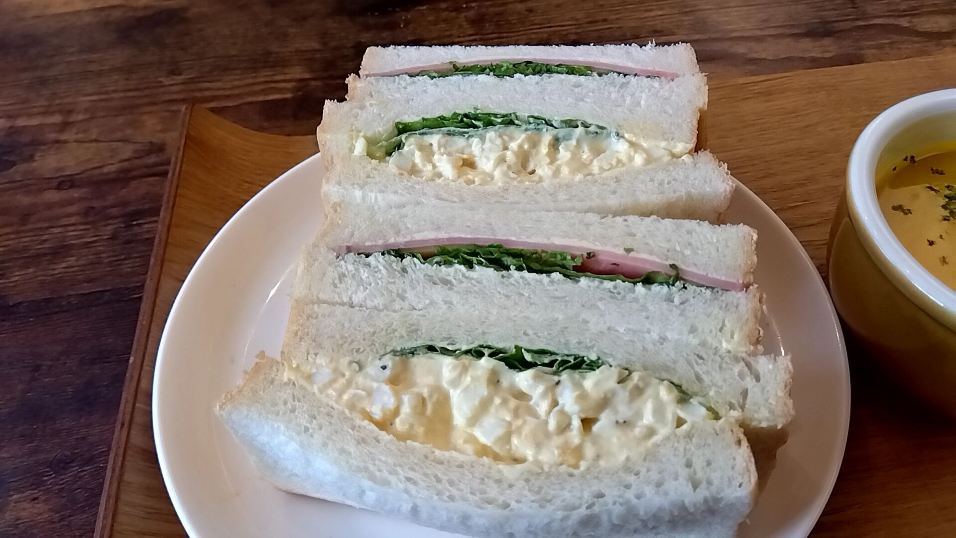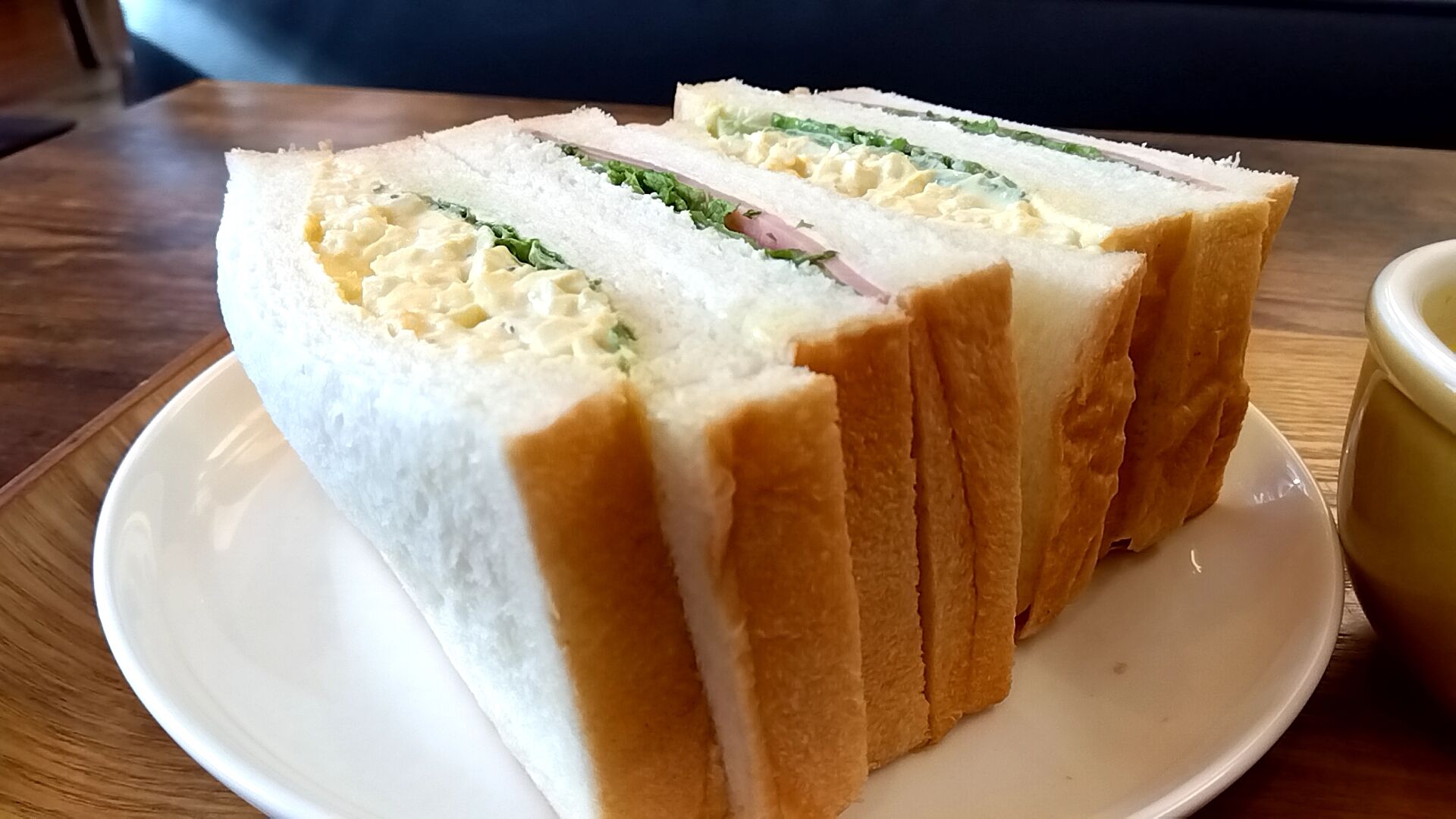 卵サンドとハムサンド、合計食パン4枚で結構ボリュームありました(=^・^=)