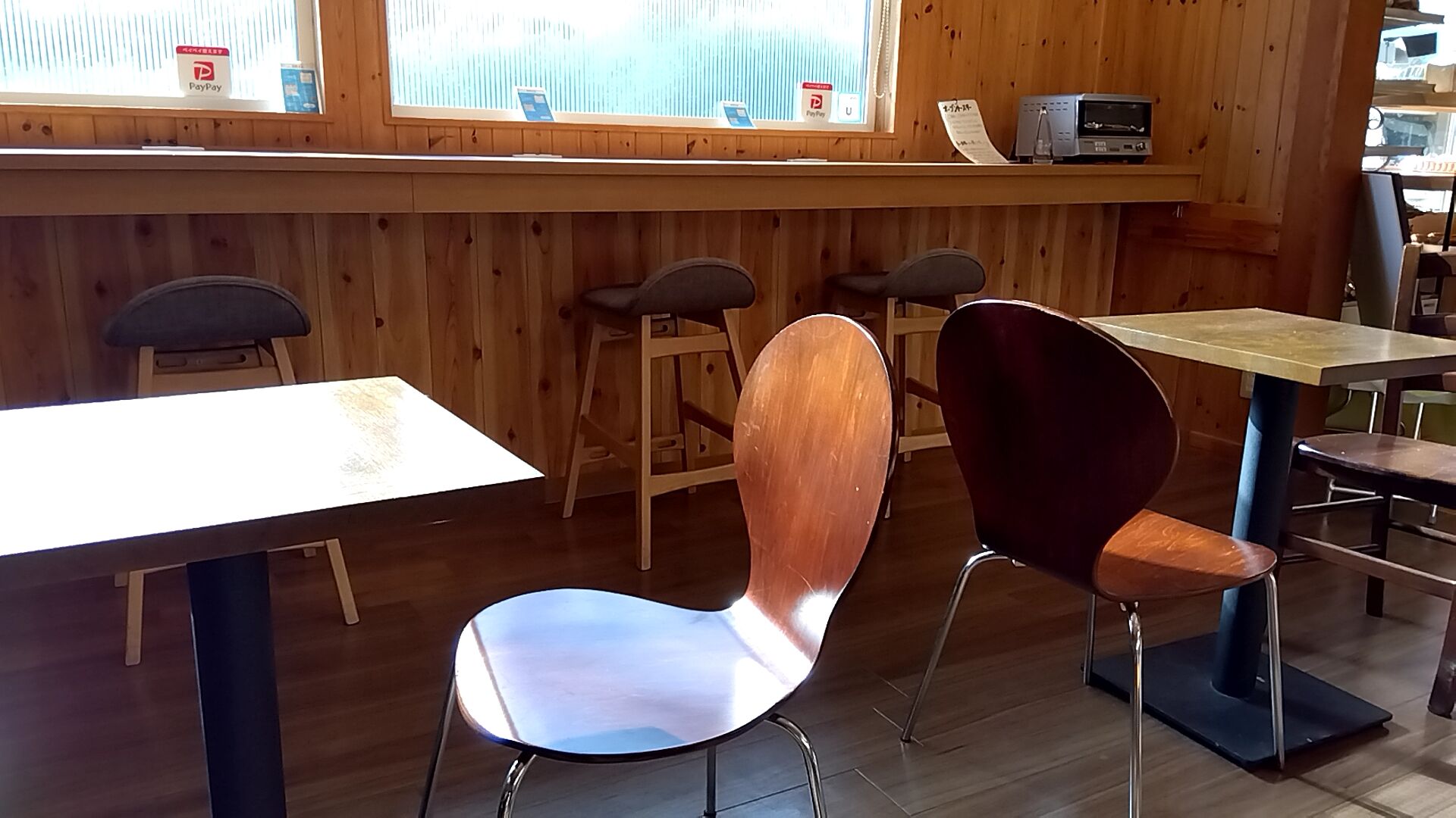イートインスペースですにゃ、カウンター席・テーブル席。