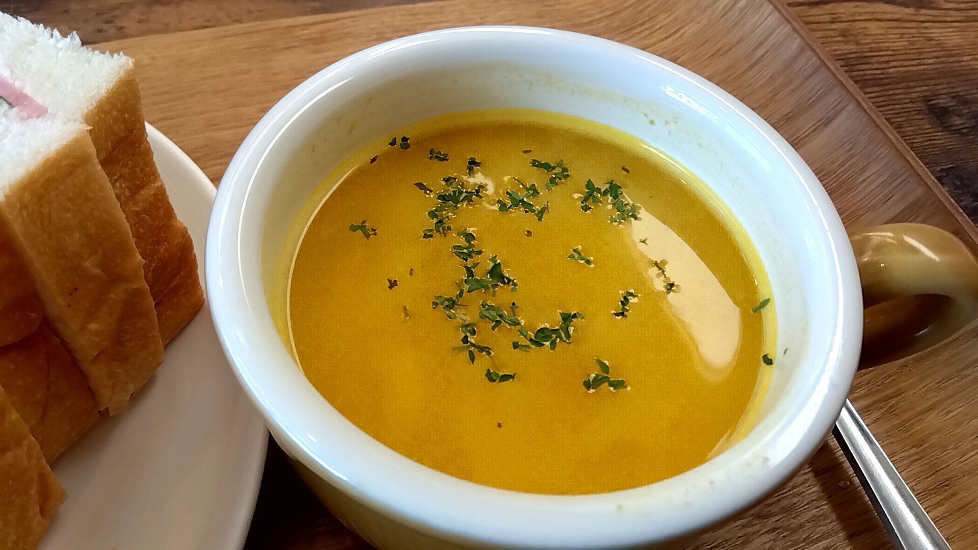 日替わりのスープ、この日はパンプキンスープでしたにゃ。