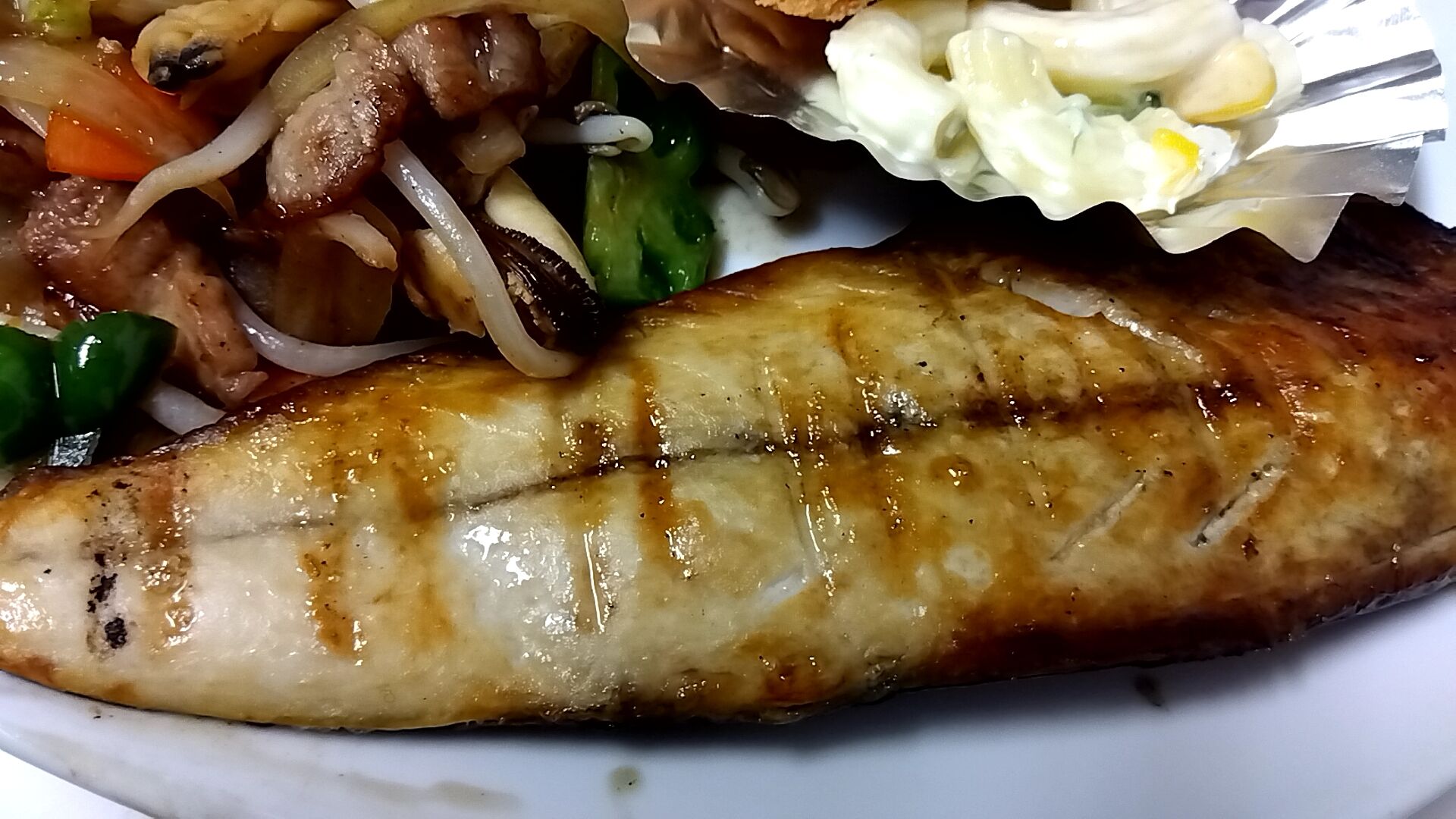 塩鯖焼きは小さ目だろうと思っていたのですが、デカい半身で嬉しい誤算でした( ̄◇ ̄)