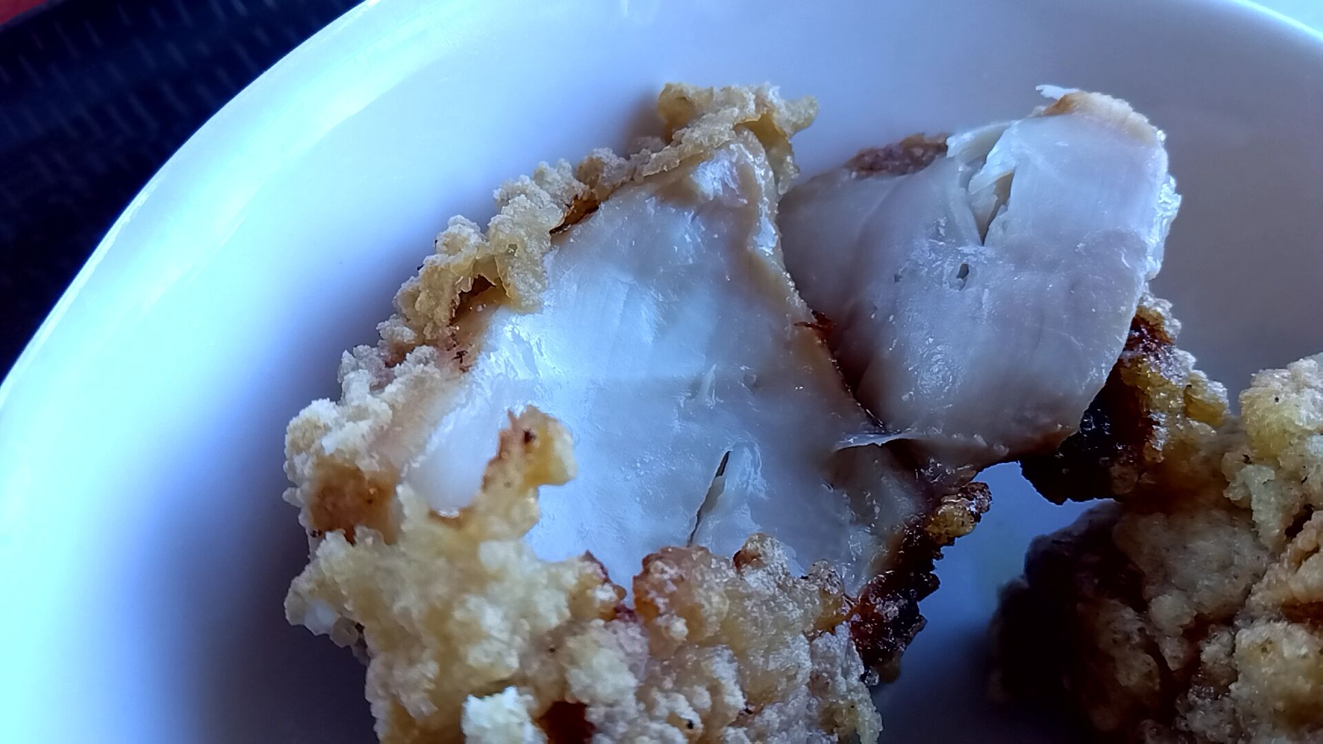 箸で割ってみました、パリッと揚げ立ての唐揚げはスッキリ醤油味でした☆彡
