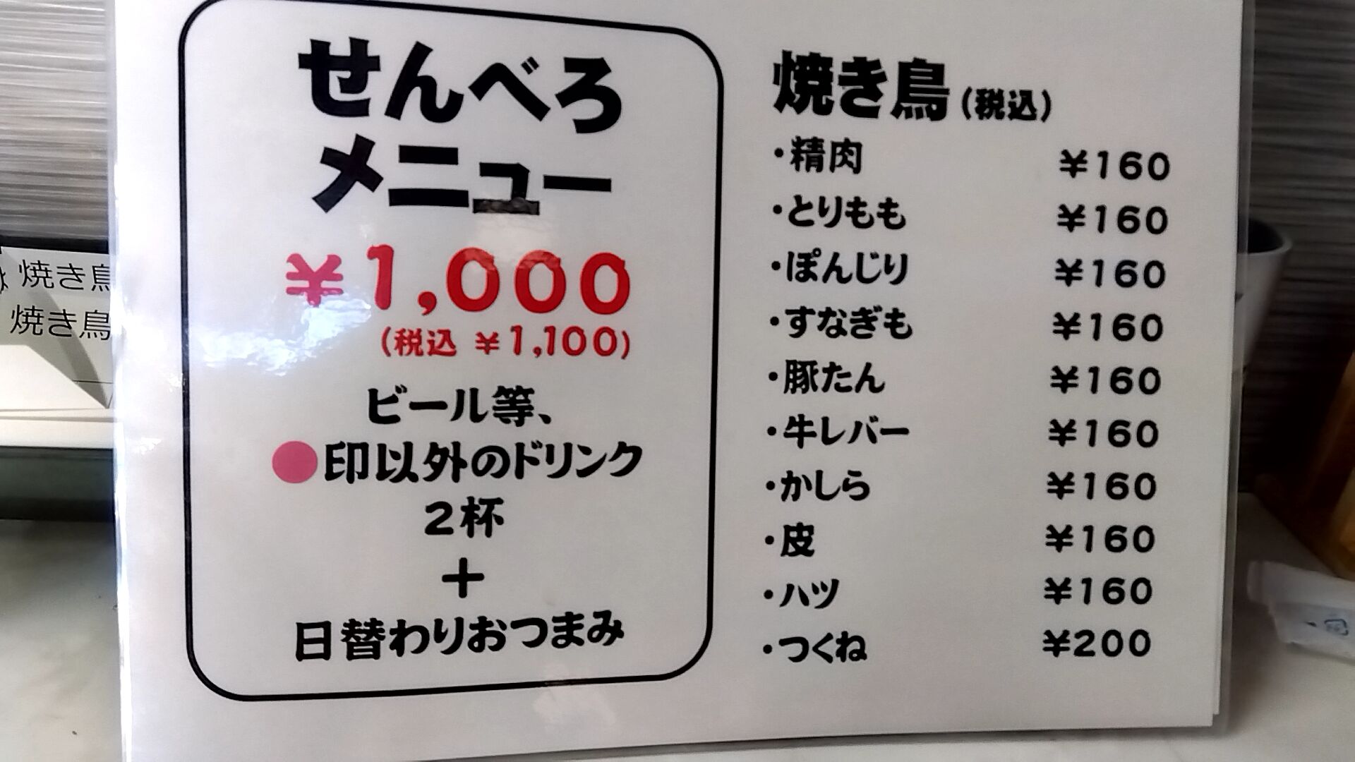 せんべろメニューは選べるドリンク2杯と日替わりおつまみ🎵