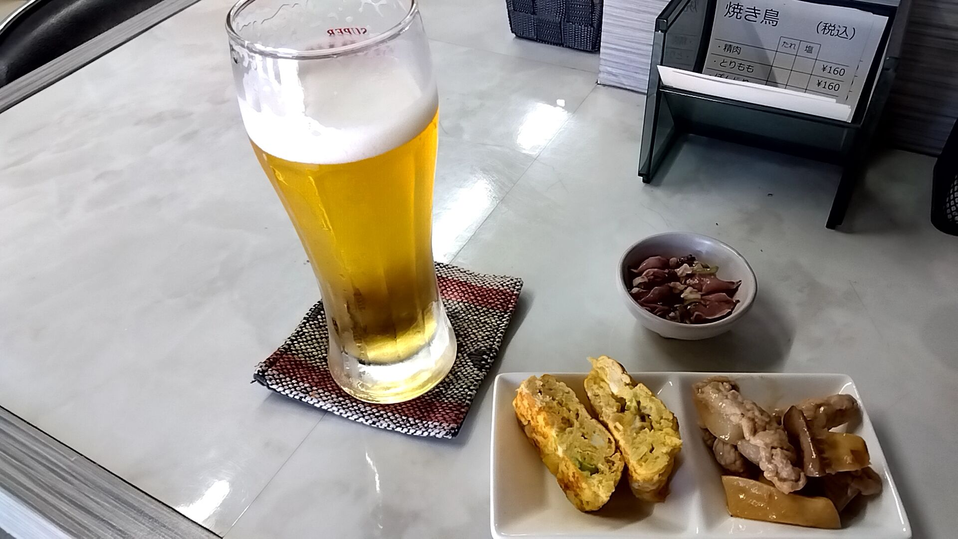 せんべろメニュー1000円、取り敢えずのお麦汁スーパードライ🍻