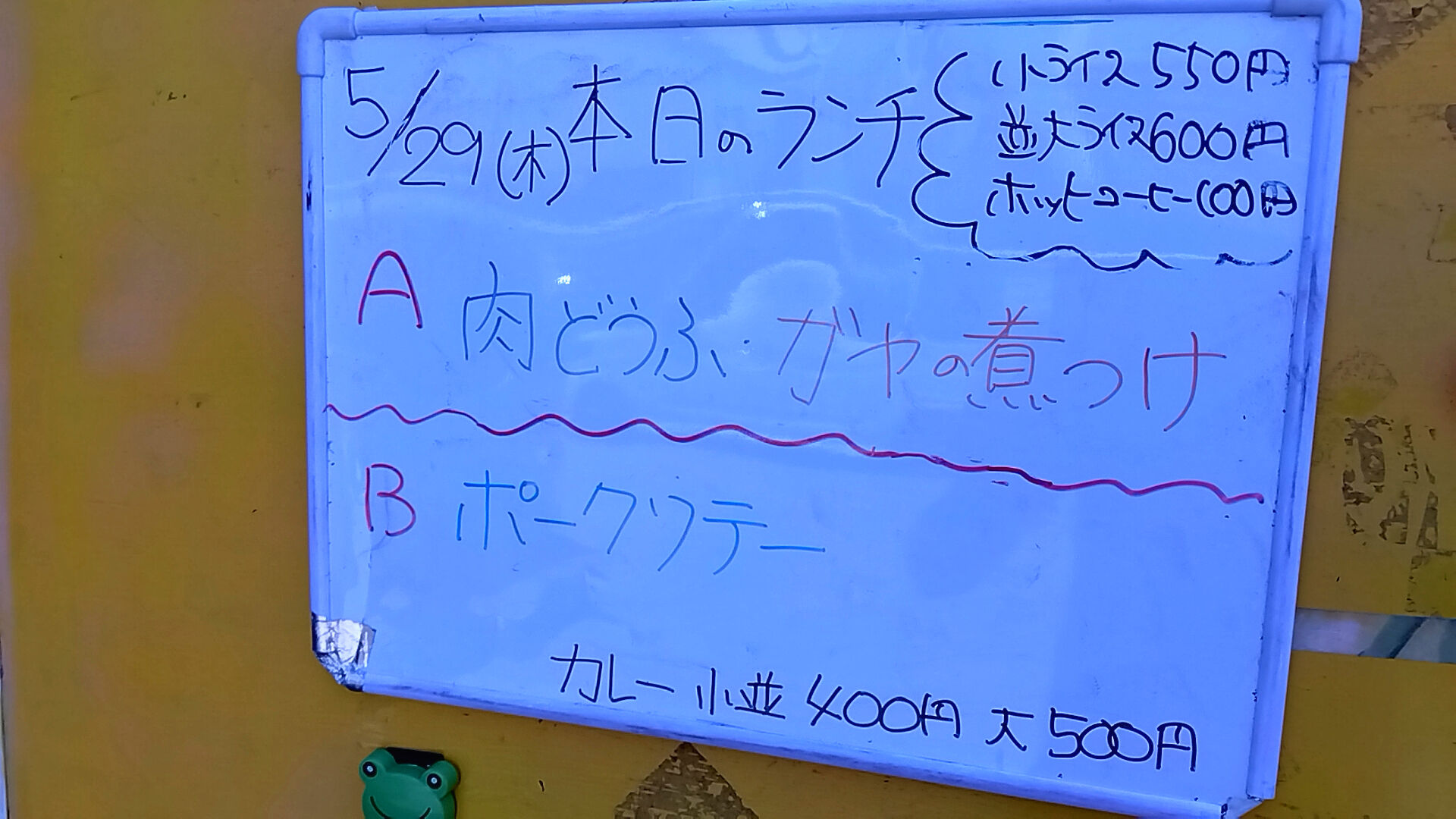Aランチ(肉どうふ・ガヤの煮付け)ご飯大盛り600円