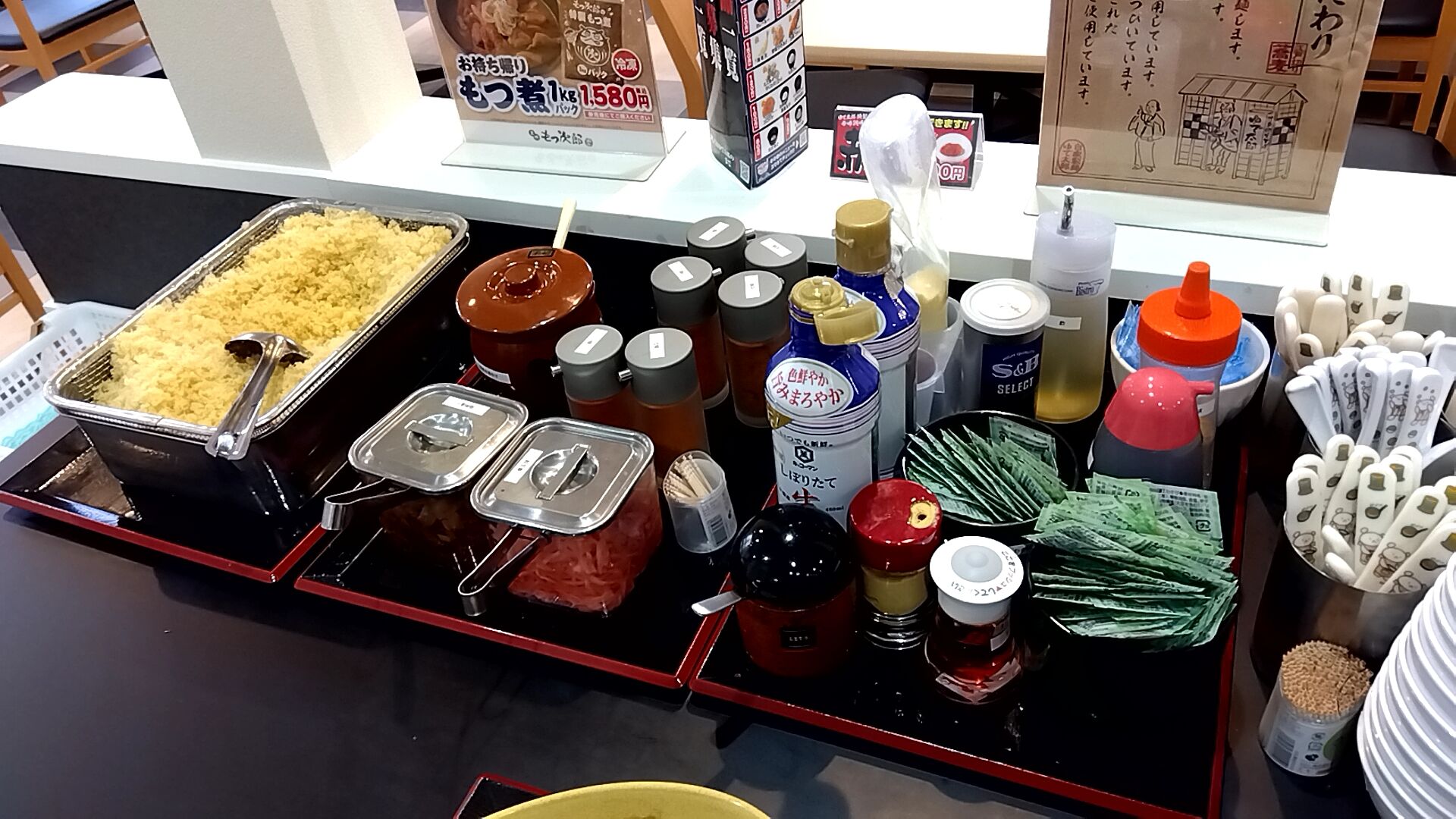 箸・スプーン、福神漬け・小袋ワサビをゲットして席へ帰還。