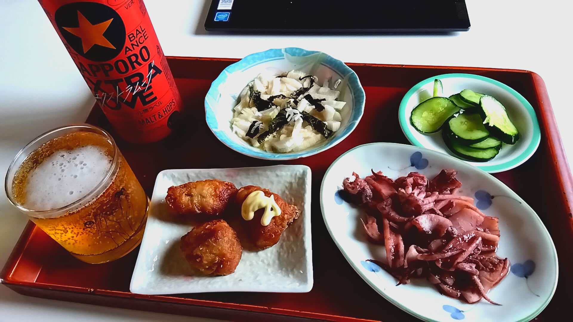 今日の宅呑み、手始めはこんな感じだぬ🍻