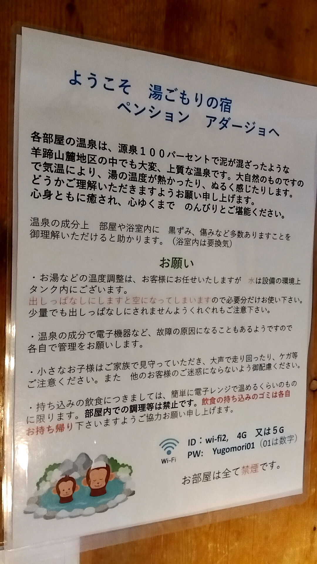 wi-fiありますがロビーから遠いお部屋は電波弱いのが難点ですねぇ。