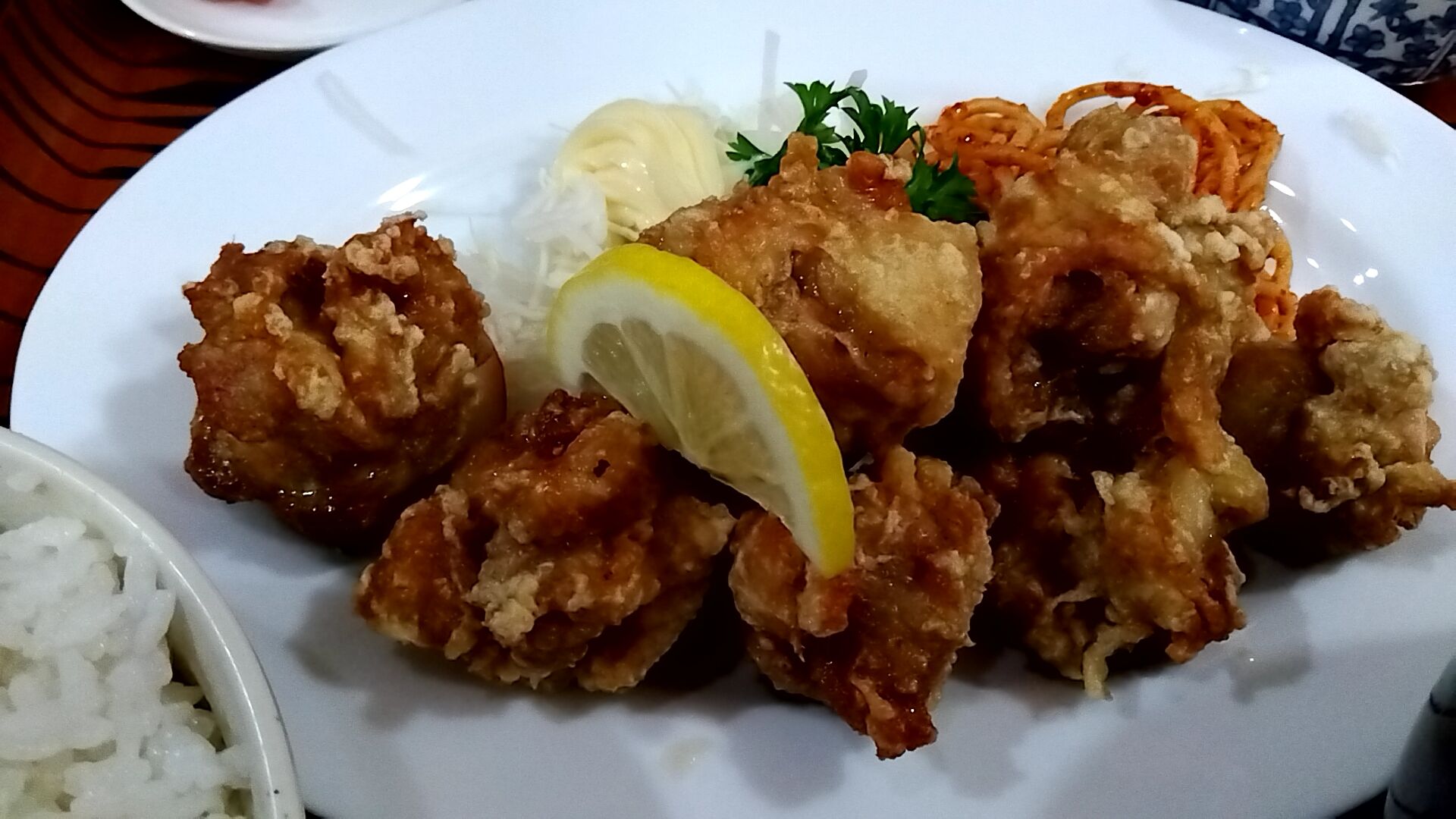 やや小振りな唐揚げが7個🎵