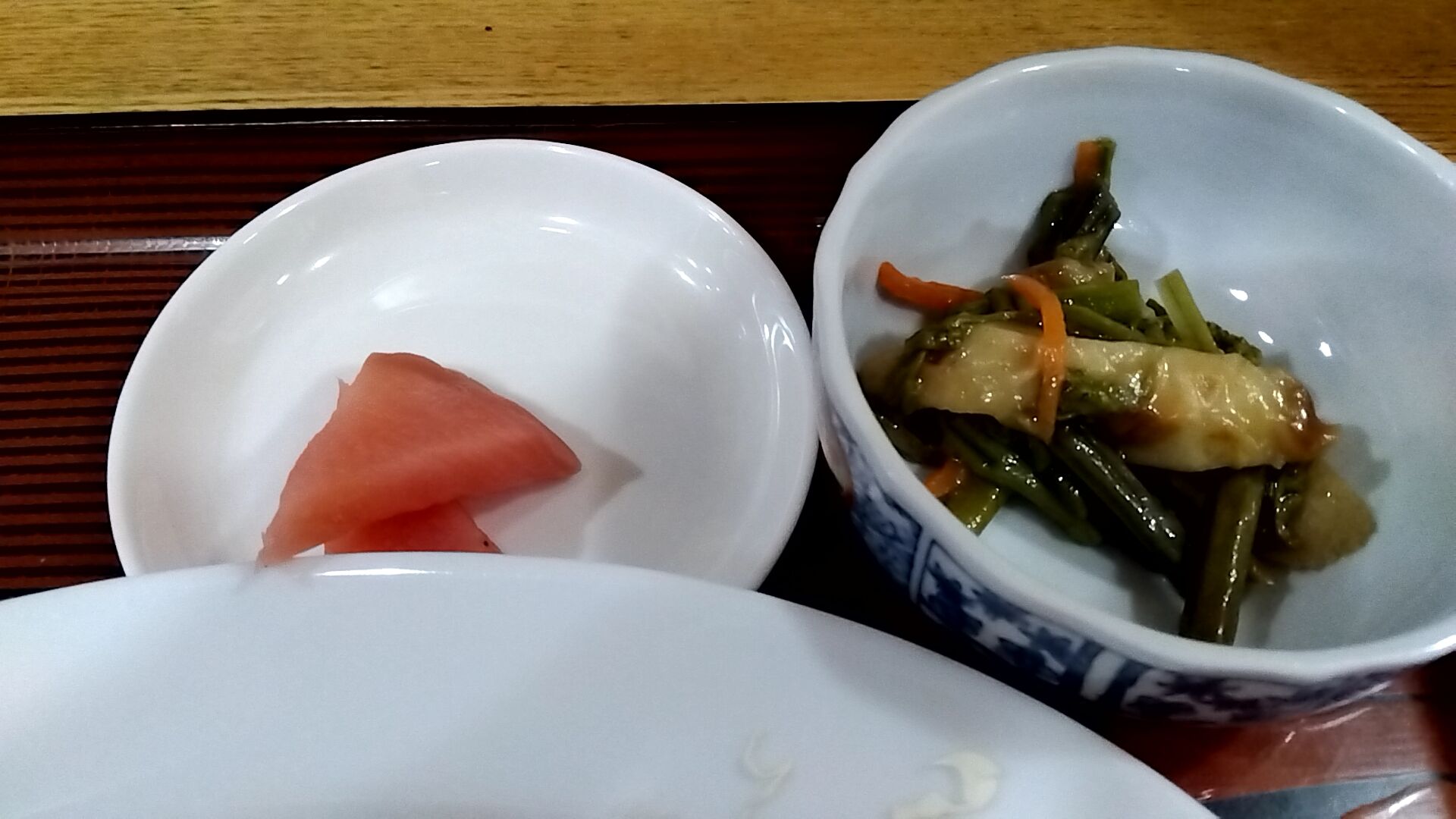 竹輪と蕨の煮物、蕪のお漬物。