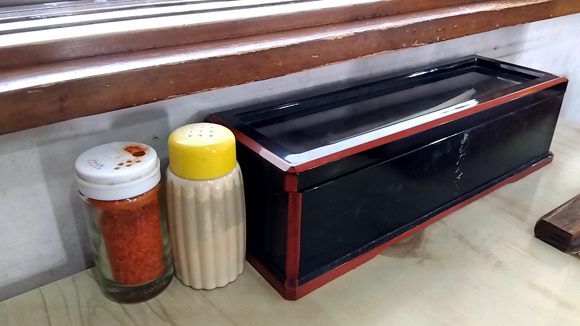 先客の婆さんが塩ラーメンを麺硬めでオーダーしていた。
