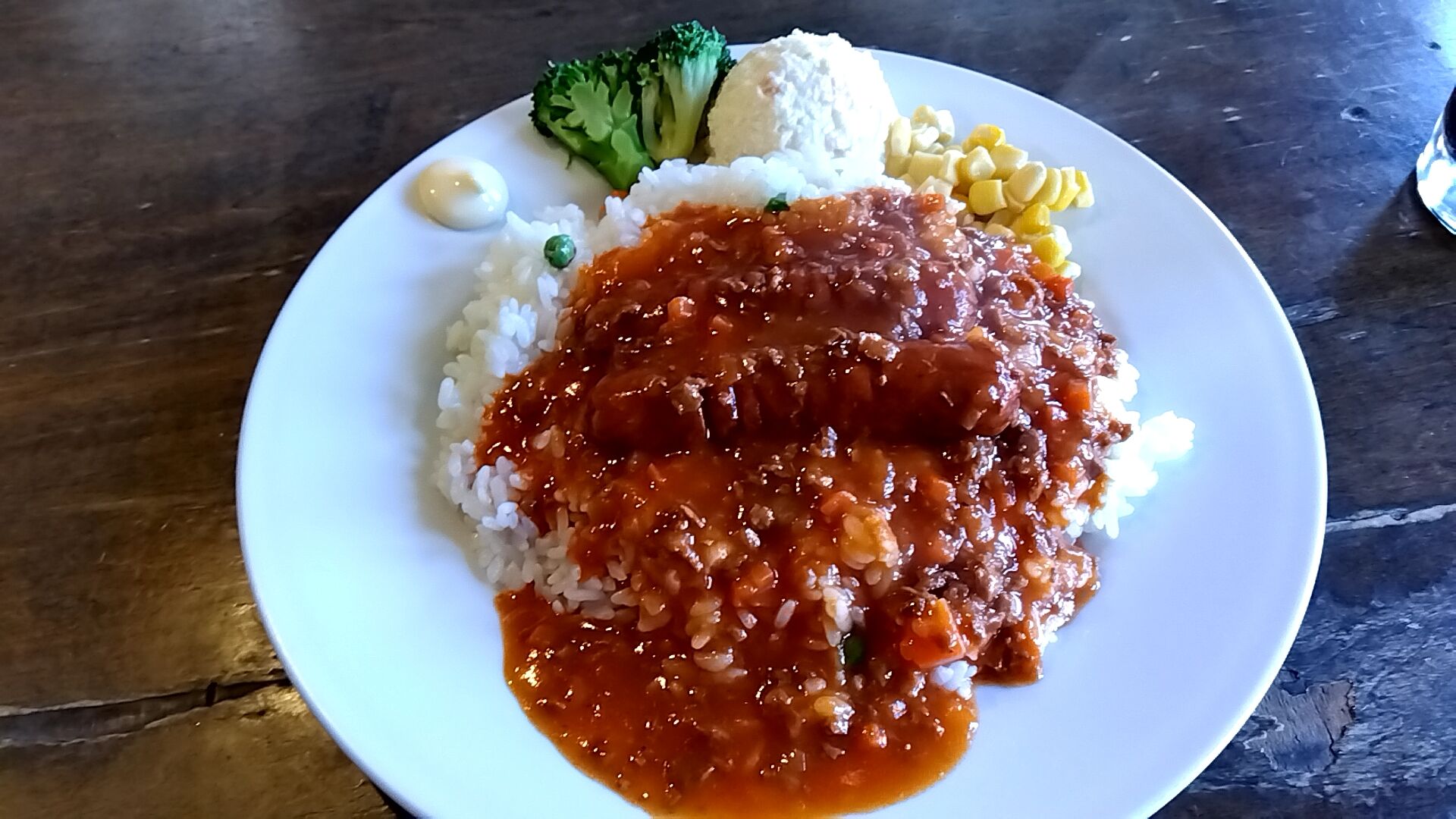 付け合せはスイートコーン・ポテサラ・ブロッコリー・麗しのマヨ嬢。