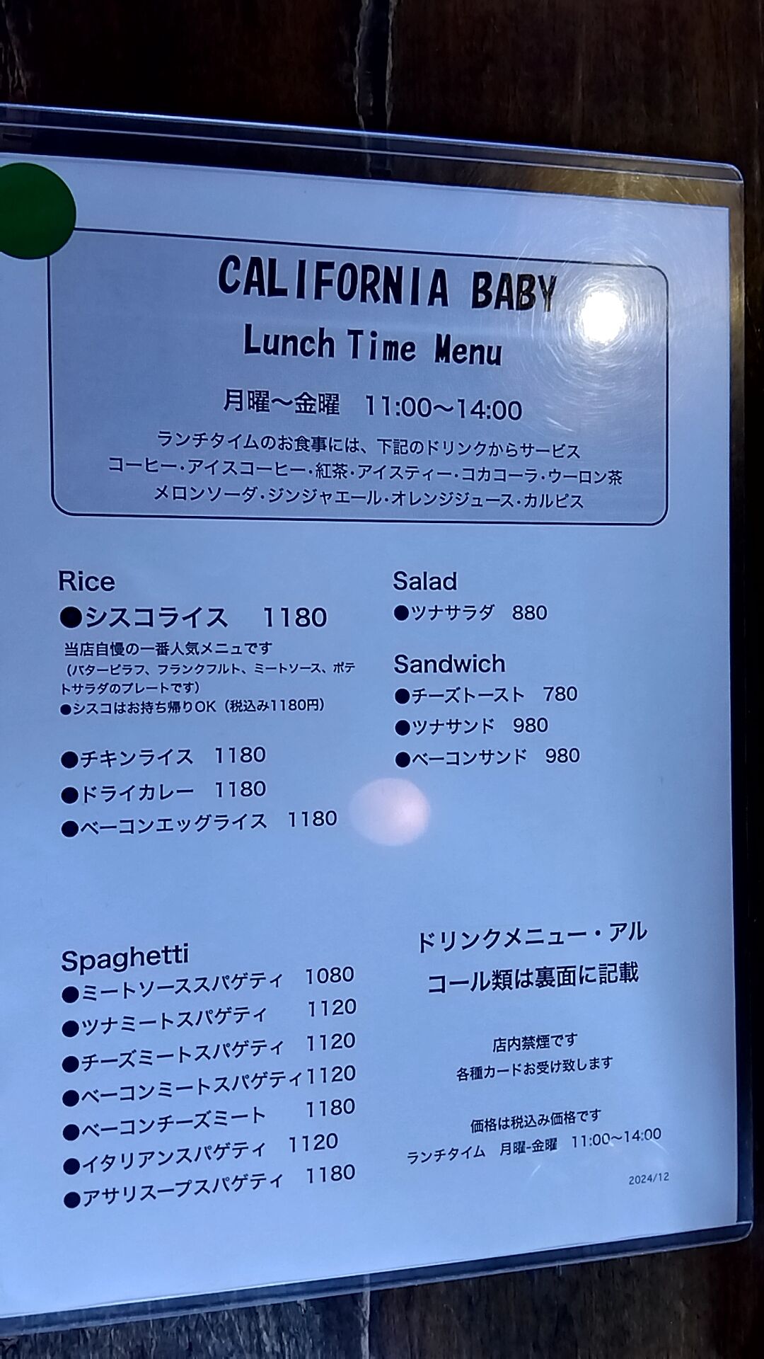 何気に5年振り、看板メニューのシスコライスは300円値上がりしておりました。
