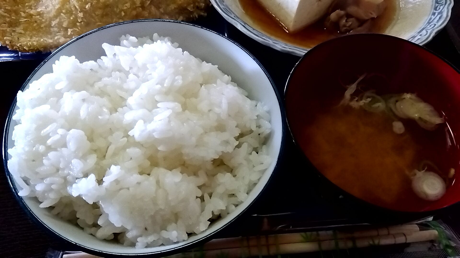 大盛りご飯・かきたま中華スープ、たまぁに味噌汁では無い時があるにゃ。