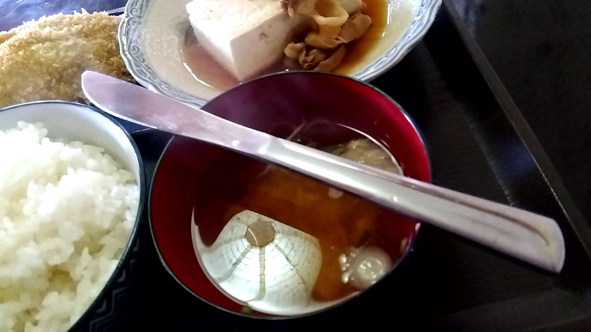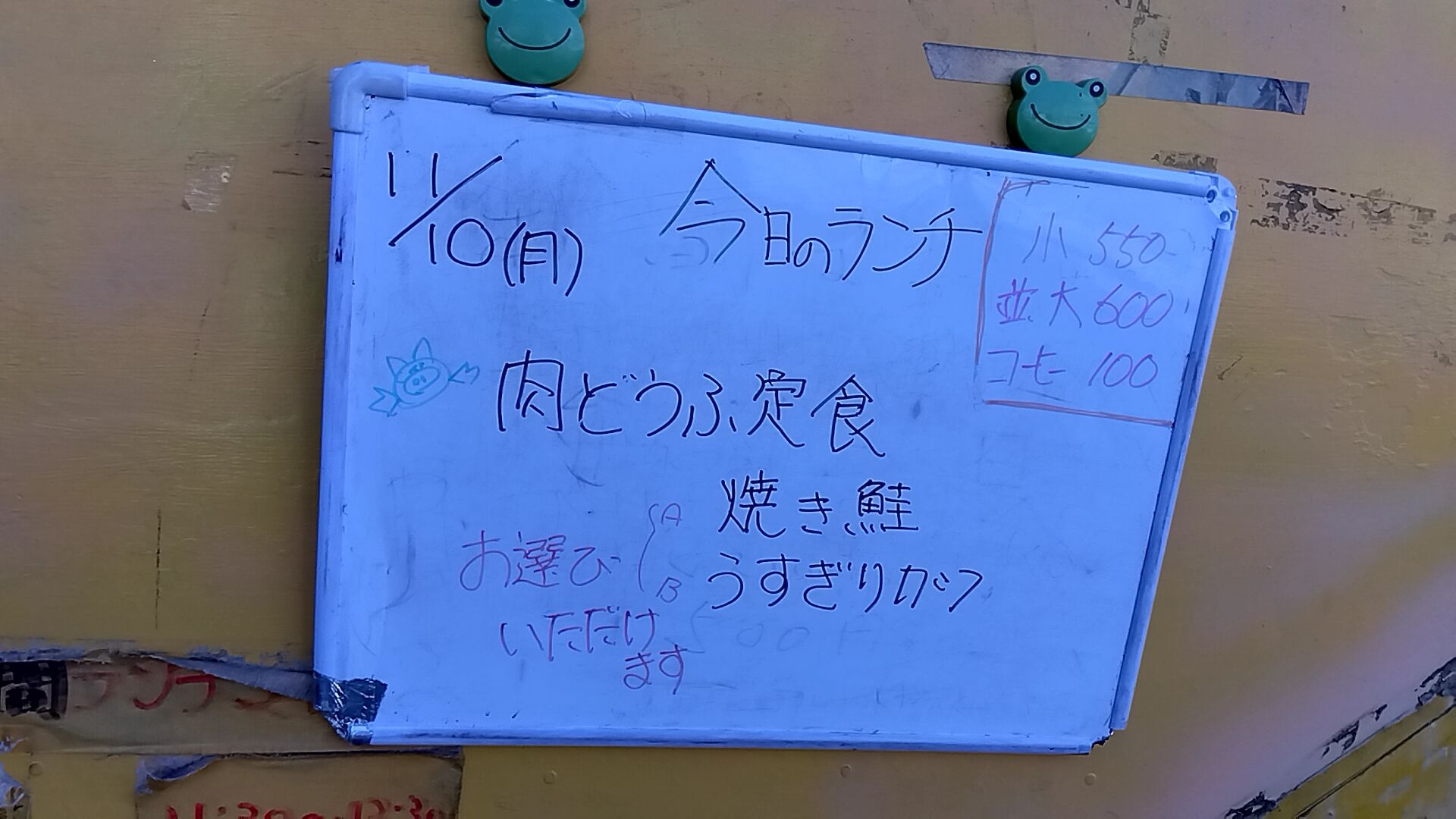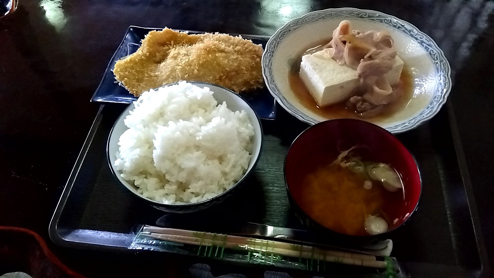 メインが肉豆腐で、他に焼き鮭か薄切りカツを選べると言う事でした。