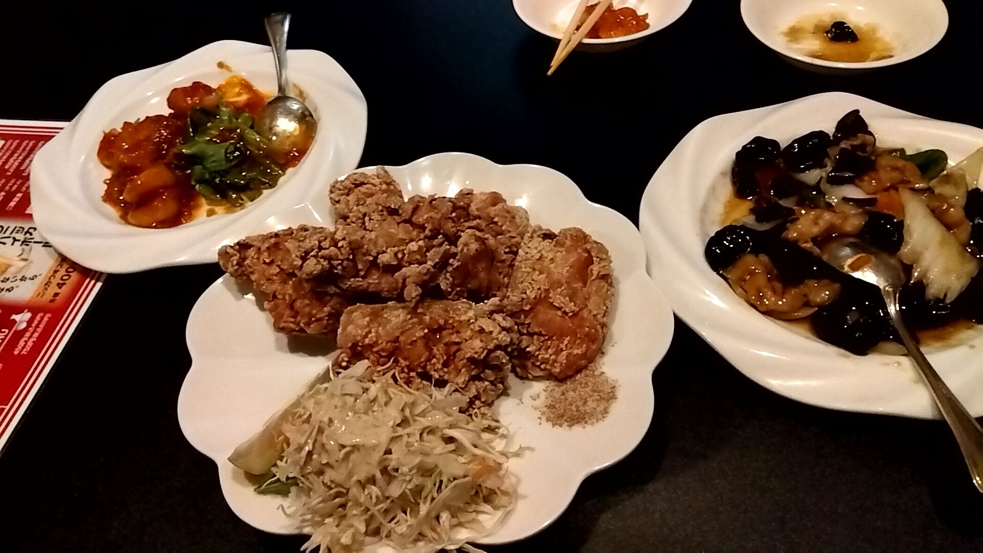 2人だったらフードはコレで十分、唐揚げは食べ切れず1個お持ち帰り。