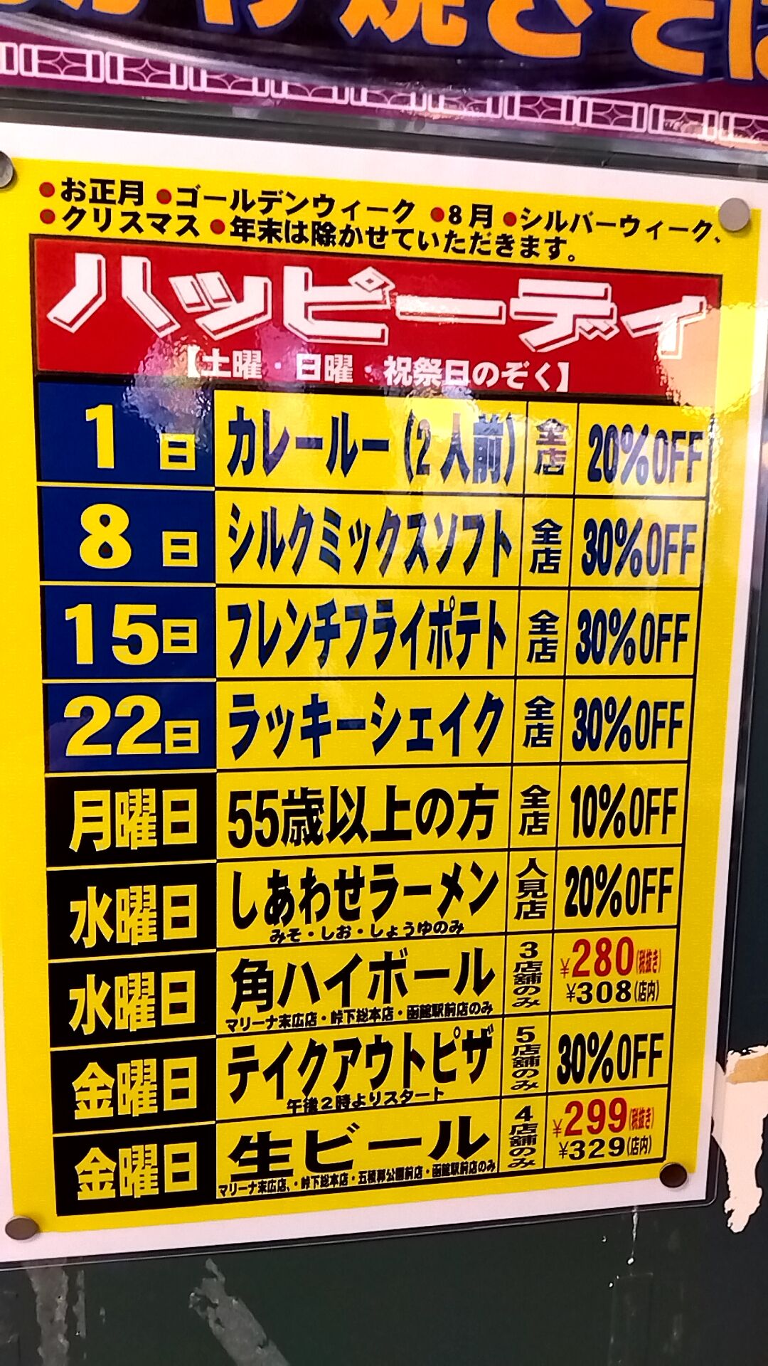 販売終了、メニューオフ。