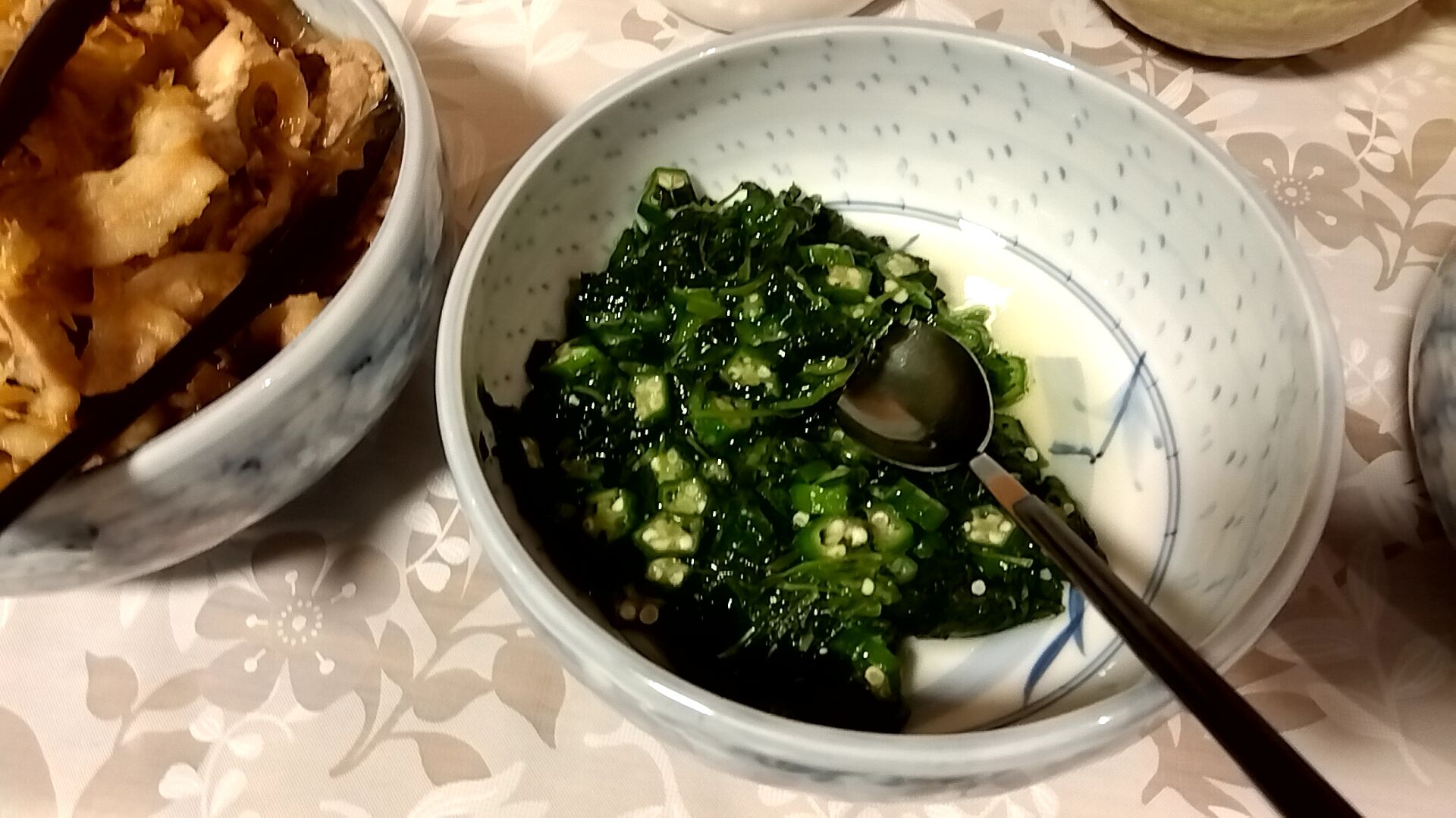 オクラとワカメのネバネ〜バ。